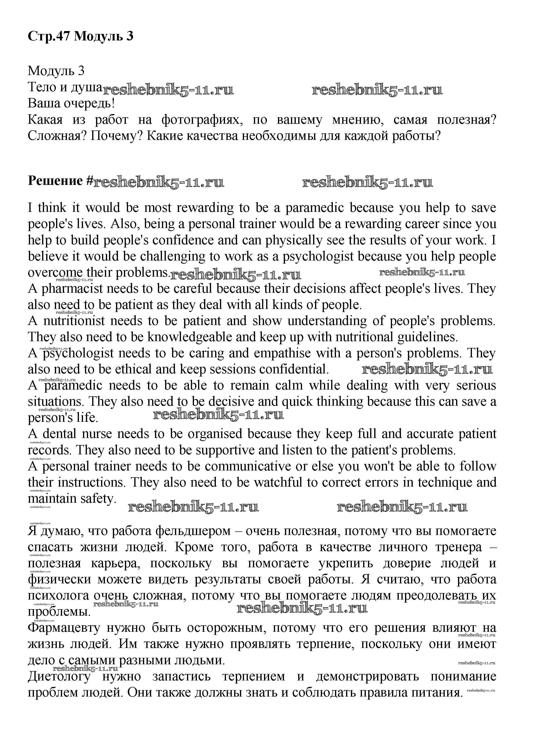 Готовая домашняя работа с ответами по Английскому языку за 9 класс Баранова, Дули, Эванс, Копылова, Мильруд Учебник Starlight Углубленный уровень Просвещение 2017 ФГОС - Module 3. Body and Soul стр.47