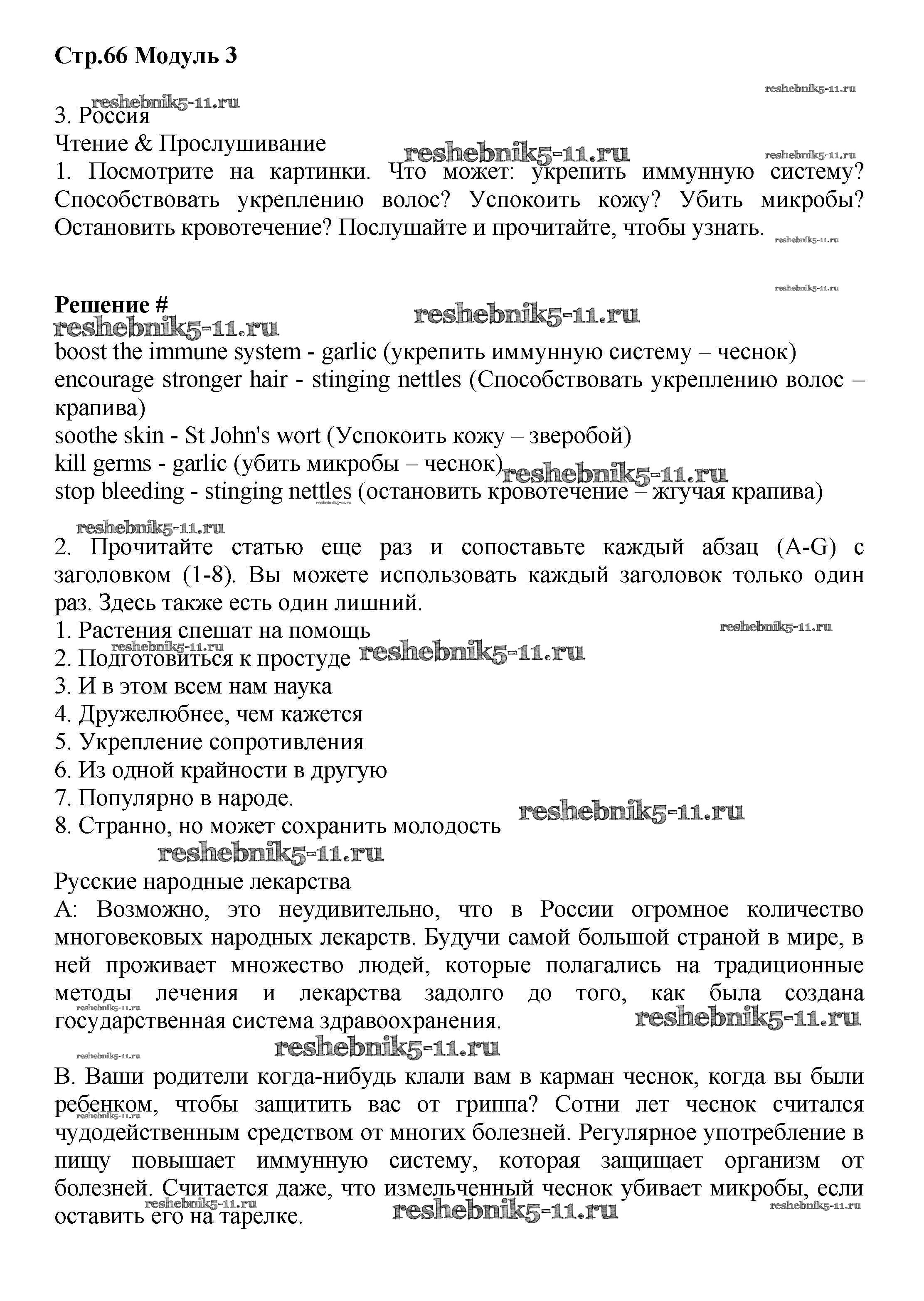 Готовая домашняя работа с ответами по Английскому языку за 9 класс Баранова, Дули, Эванс, Копылова, Мильруд Учебник Starlight Углубленный уровень Просвещение 2017 ФГОС - Module 3. Body and Soul стр.66