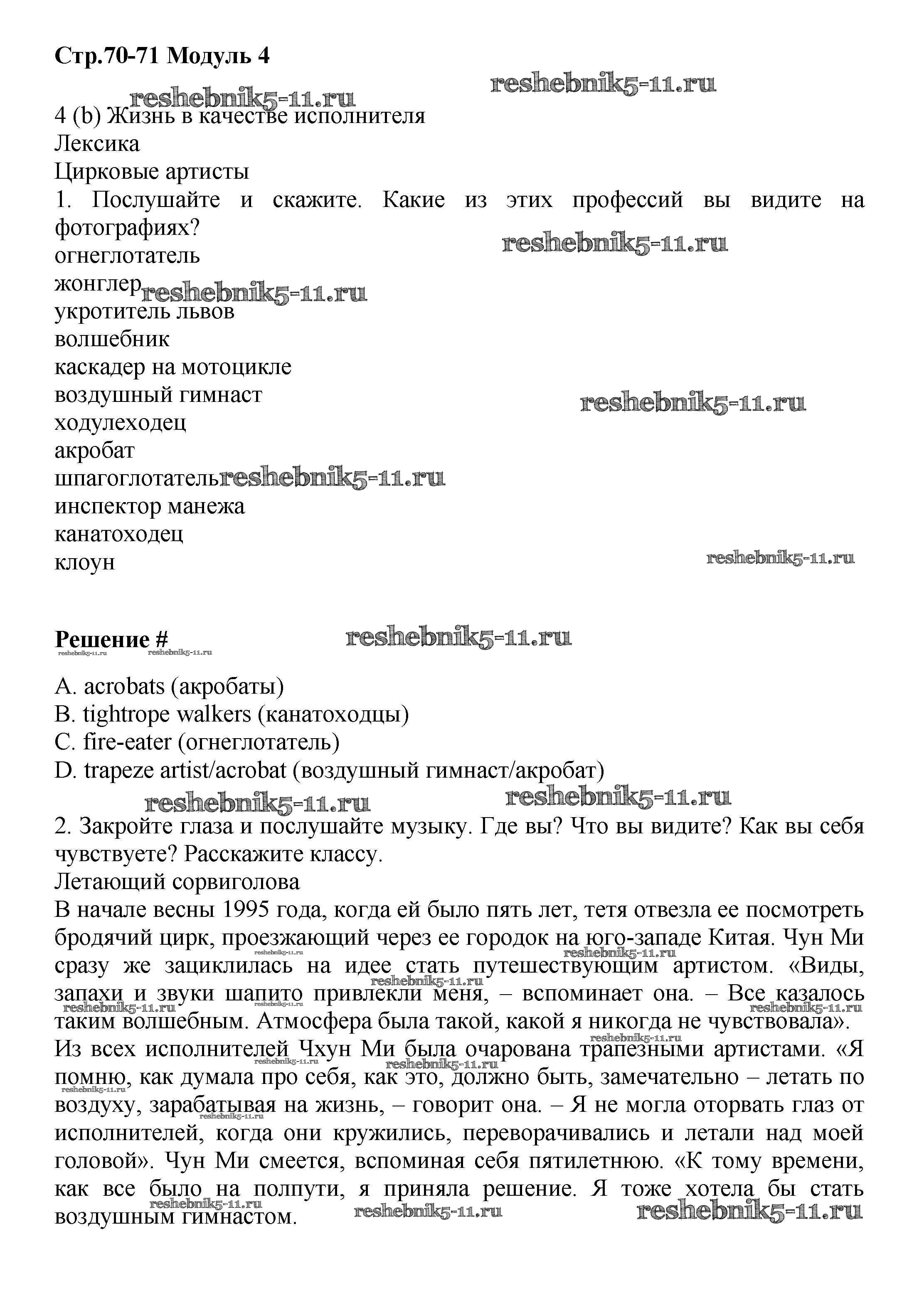 Готовая домашняя работа с ответами по Английскому языку за 9 класс Баранова, Дули, Эванс, Копылова, Мильруд Учебник Starlight Углубленный уровень Просвещение 2017 ФГОС - Module 4. Art & Entertainment стр.70-71