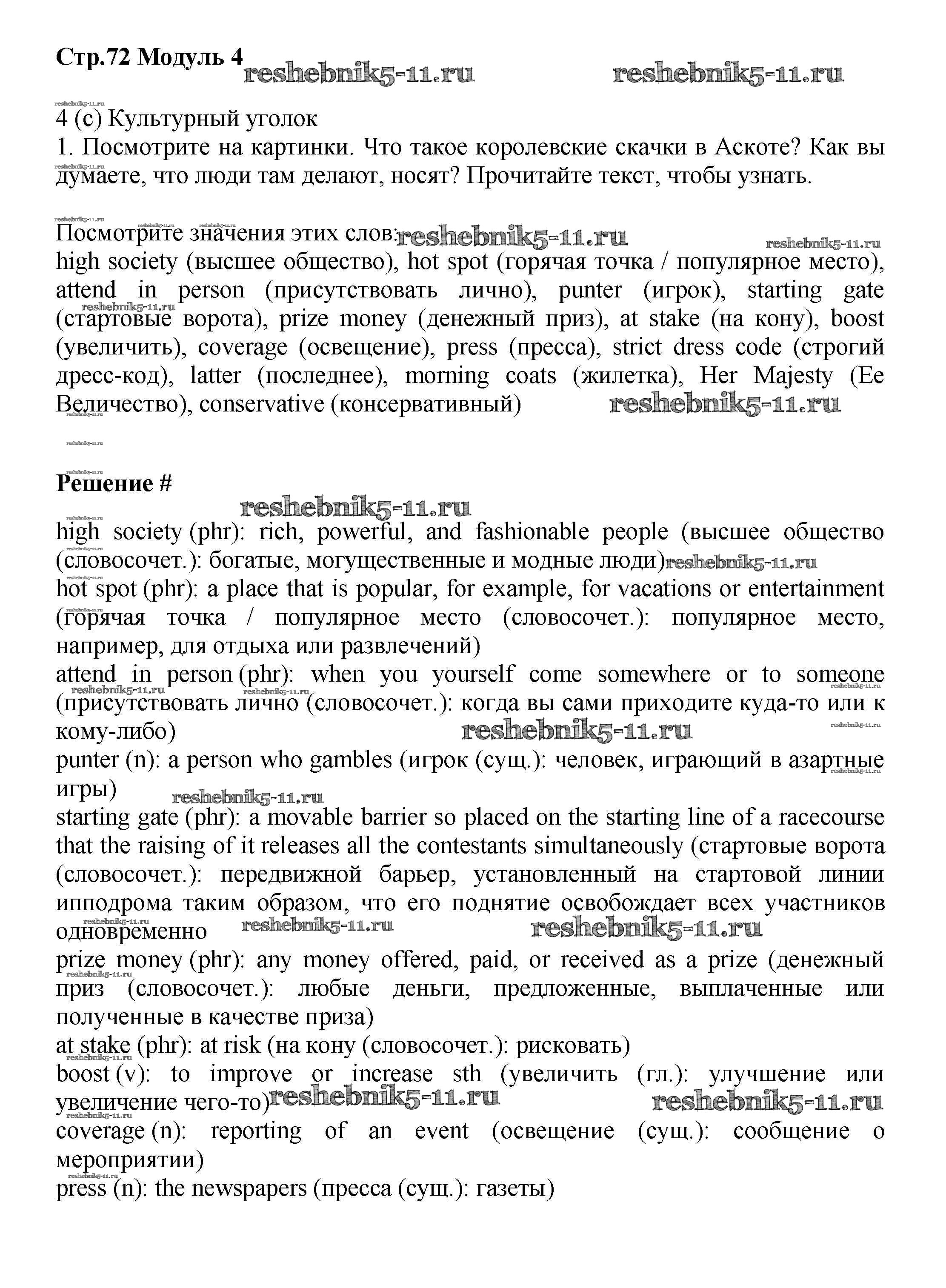 Английский язык за 9 класс Баранова Учебник Starlight Углубленный уровень Просвещение module 4 стр.72