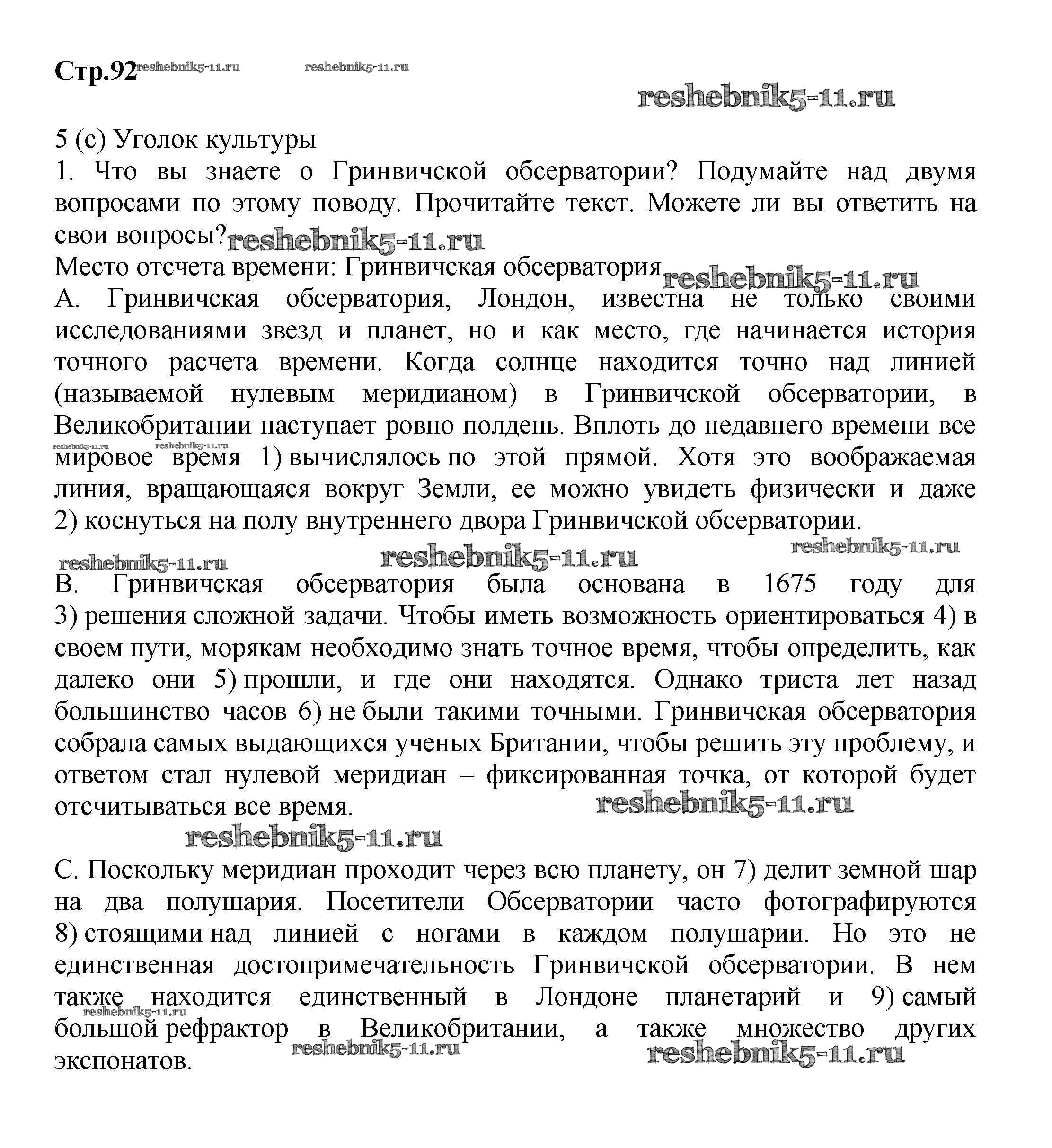 Английский язык за 9 класс Баранова Учебник Starlight Углубленный уровень Просвещение module 5 стр.92