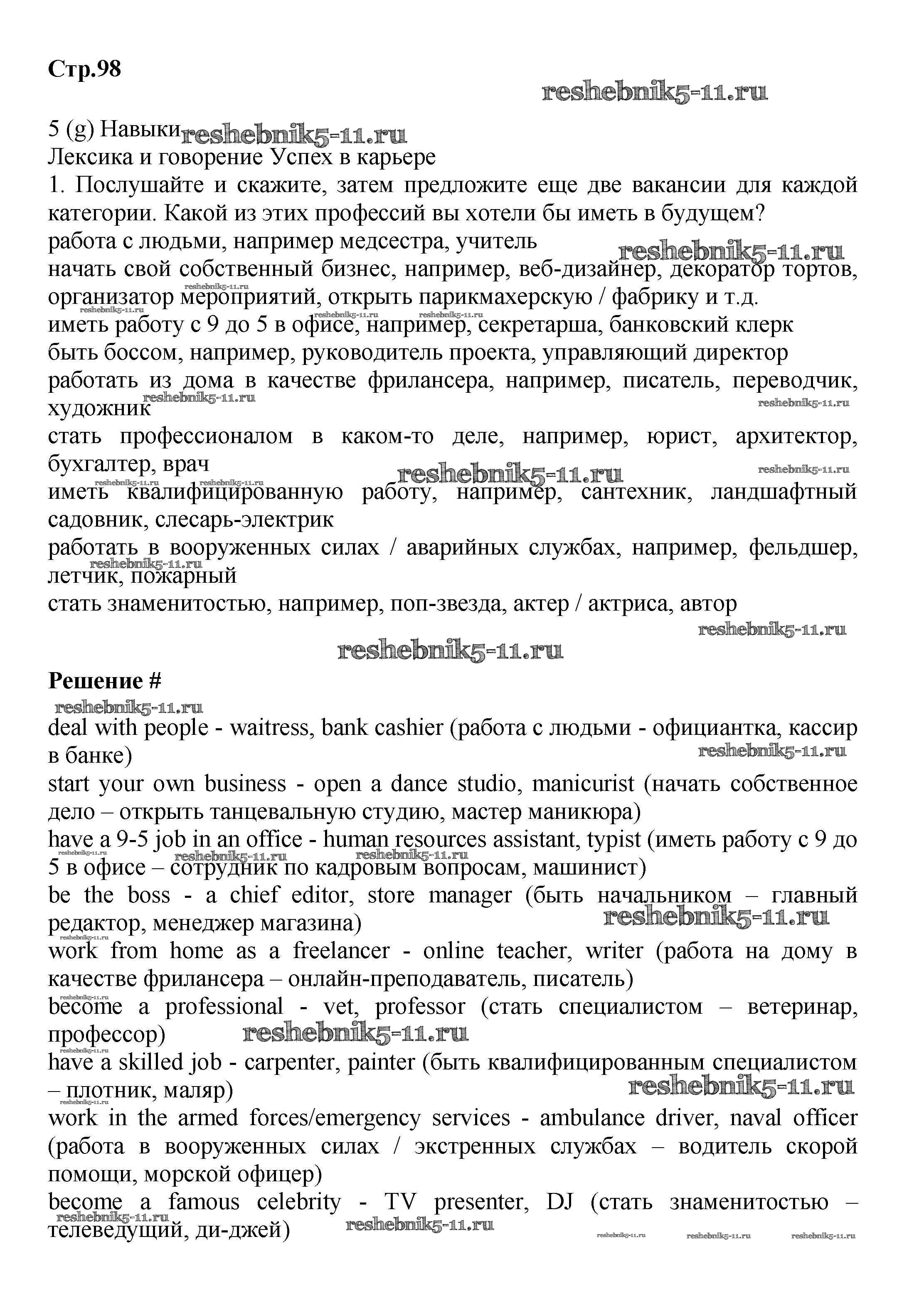 Английский язык за 9 класс Баранова Учебник Starlight Углубленный уровень Просвещение module 5 стр.98