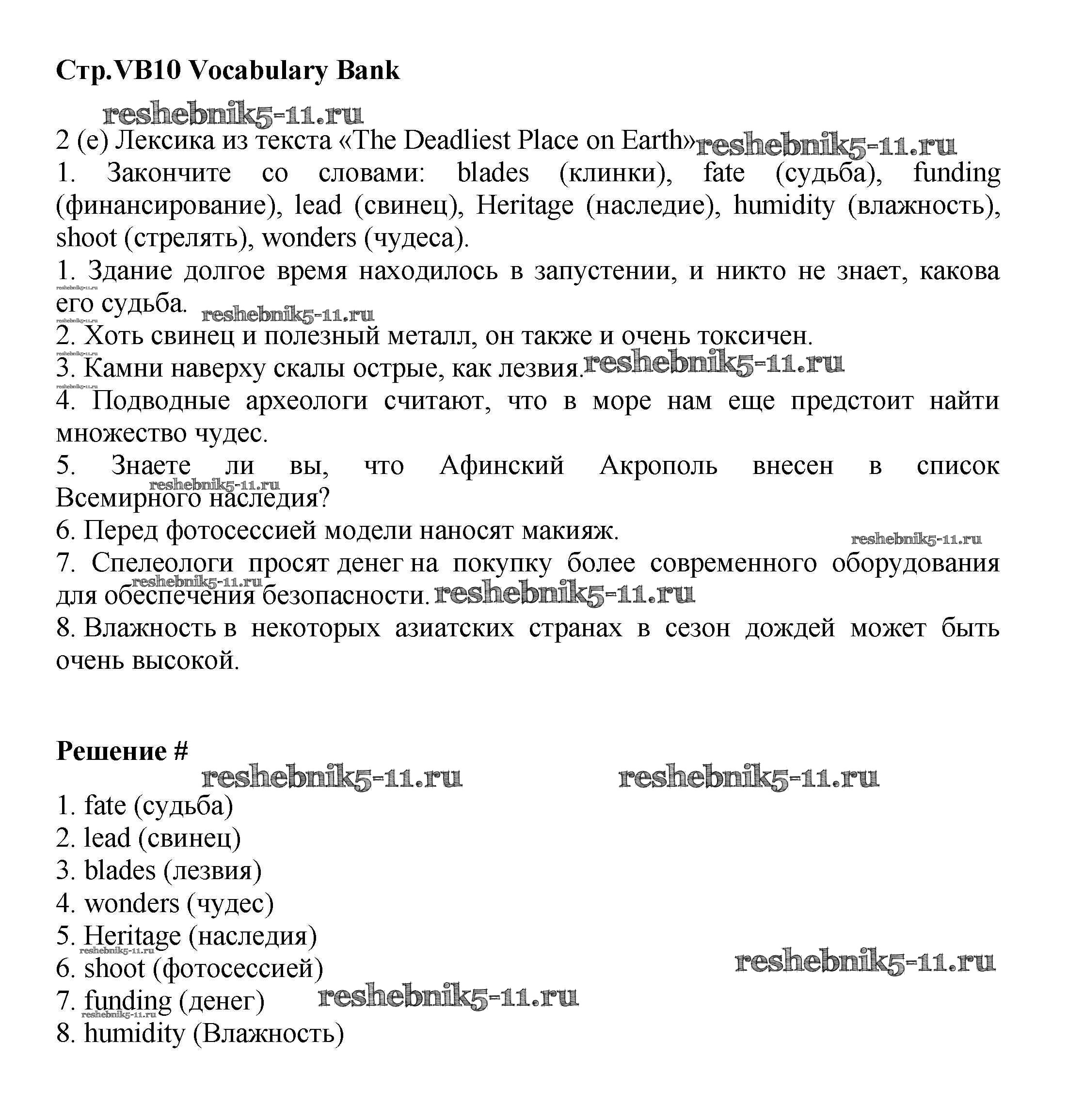 Готовая домашняя работа с ответами по Английскому языку за 9 класс Баранова, Дули, Эванс, Копылова, Мильруд Учебник Starlight Углубленный уровень Просвещение 2017 ФГОС - Vocabulary Bank VB10