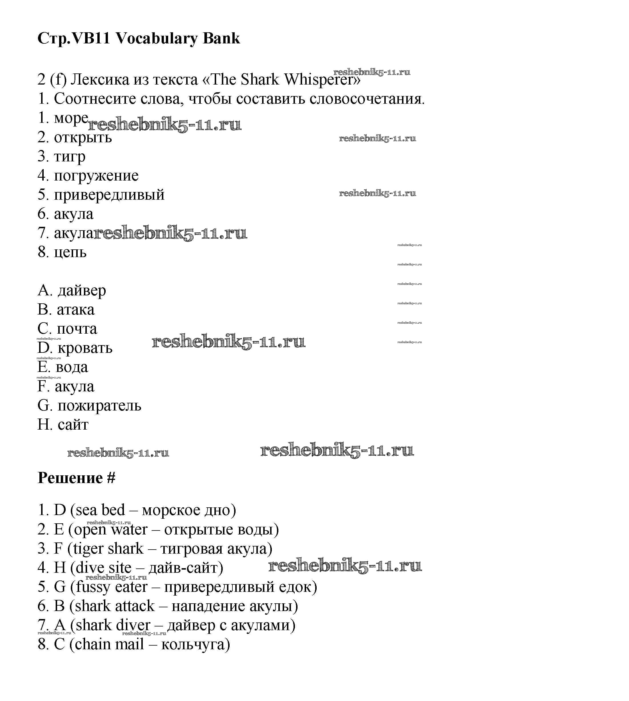 Готовая домашняя работа с ответами по Английскому языку за 9 класс Баранова, Дули, Эванс, Копылова, Мильруд Учебник Starlight Углубленный уровень Просвещение 2017 ФГОС - Vocabulary Bank VB11