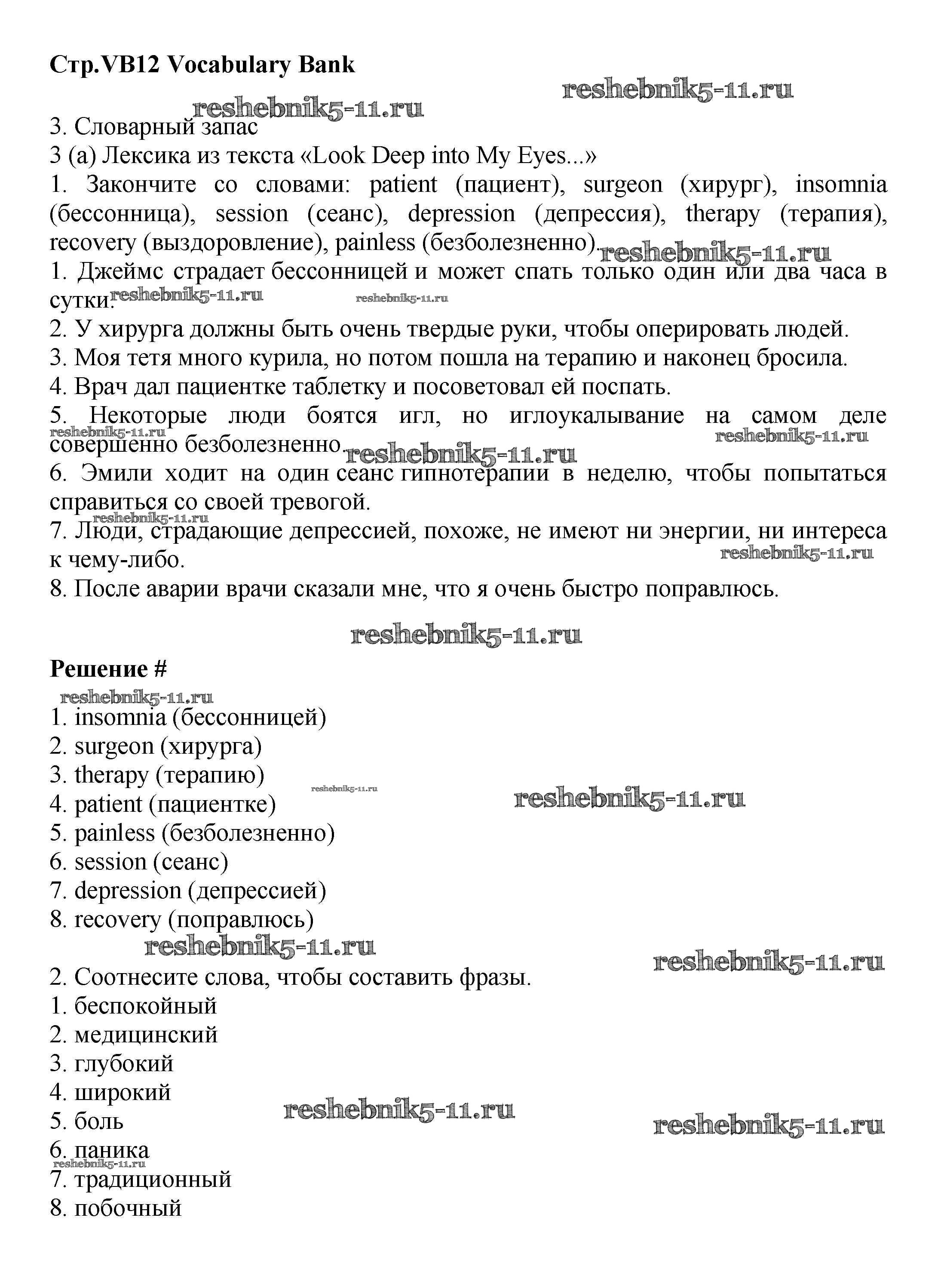 Готовая домашняя работа с ответами по Английскому языку за 9 класс Баранова, Дули, Эванс, Копылова, Мильруд Учебник Starlight Углубленный уровень Просвещение 2017 ФГОС - Vocabulary Bank VB12