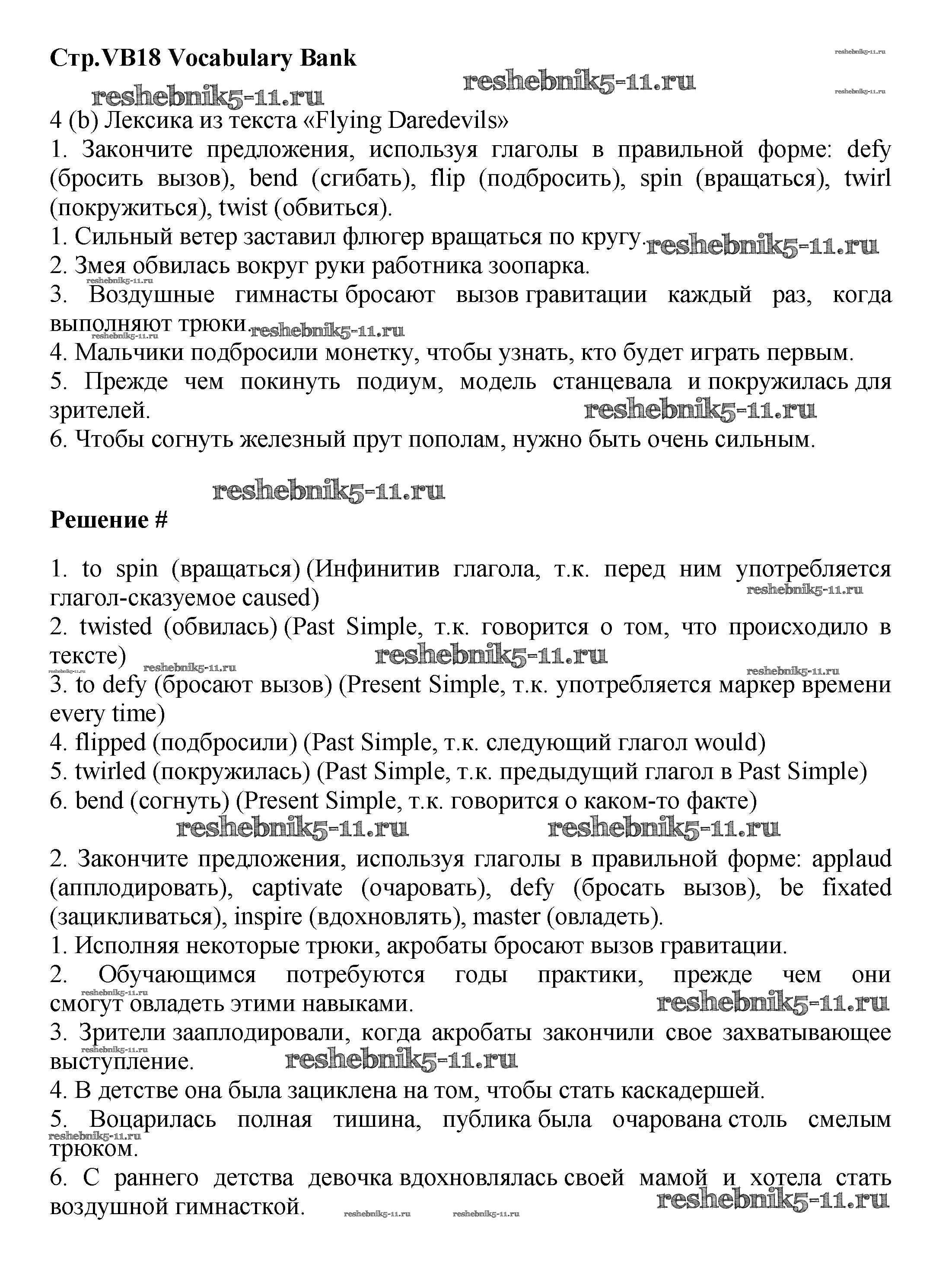 Готовая домашняя работа с ответами по Английскому языку за 9 класс Баранова, Дули, Эванс, Копылова, Мильруд Учебник Starlight Углубленный уровень Просвещение 2017 ФГОС - Vocabulary Bank VB18