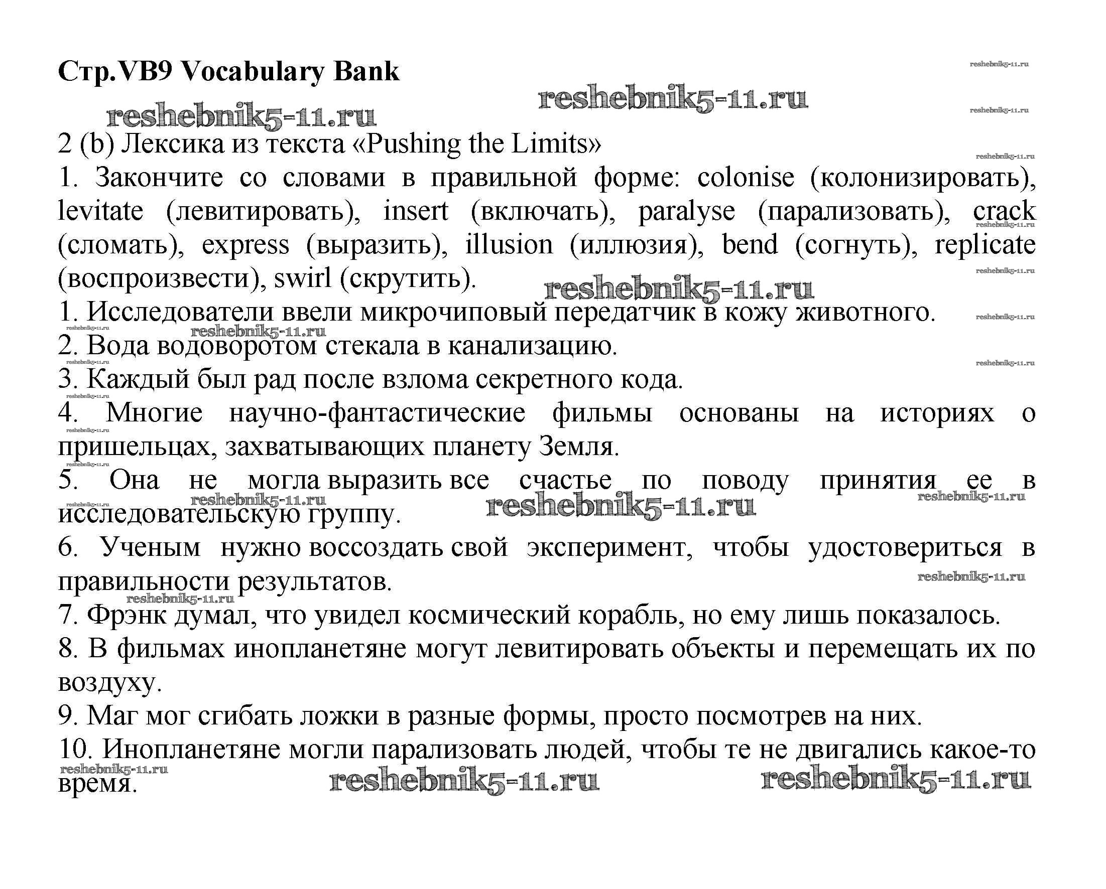 Готовая домашняя работа с ответами по Английскому языку за 9 класс Баранова, Дули, Эванс, Копылова, Мильруд Учебник Starlight Углубленный уровень Просвещение 2017 ФГОС - Vocabulary Bank VB9