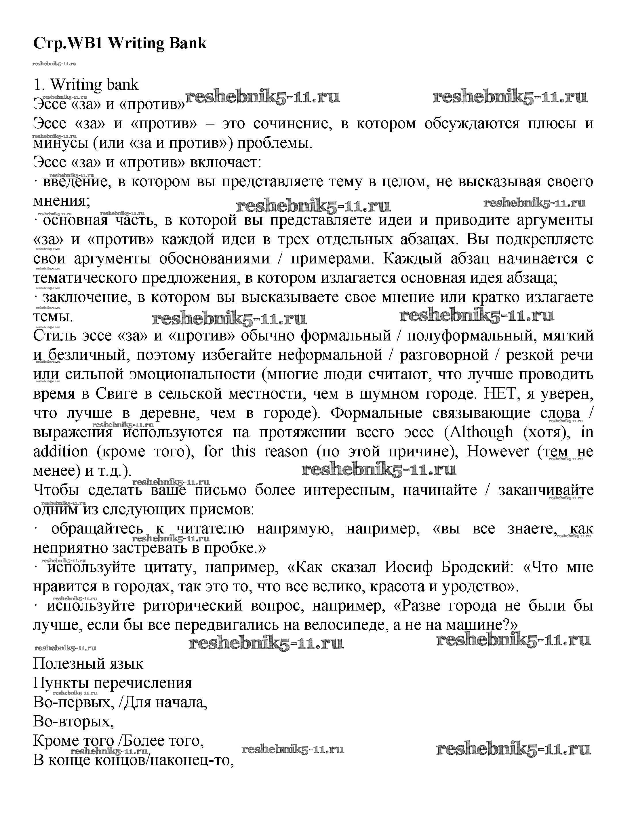 Готовая домашняя работа с ответами по Английскому языку за 9 класс Баранова, Дули, Эванс, Копылова, Мильруд Учебник Starlight Углубленный уровень Просвещение 2017 ФГОС - Writing Bank WB1