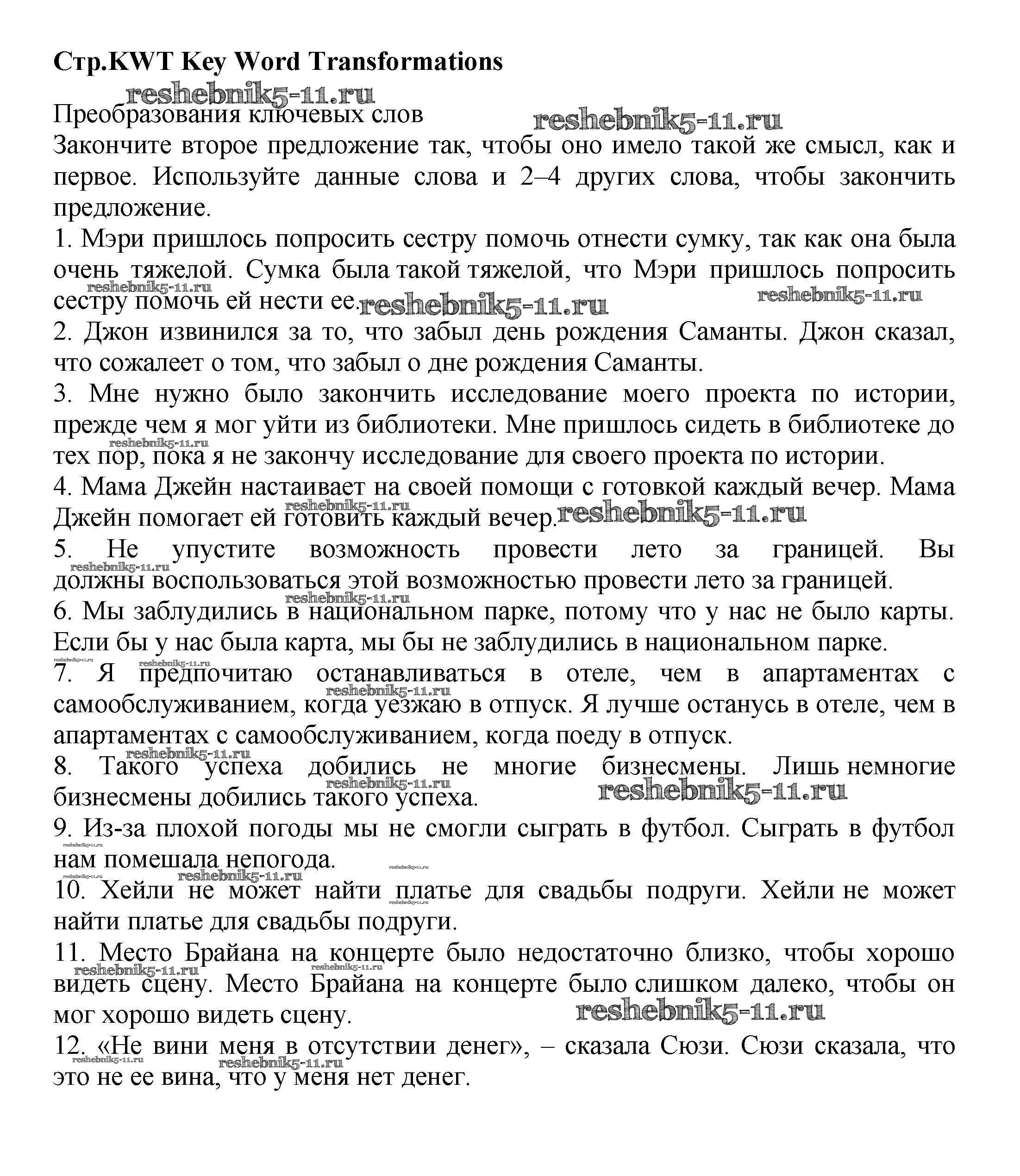 Готовая домашняя работа с ответами по Английскому языку за 9 класс Баранова, Дули, Эванс, Копылова, Мильруд Учебник Starlight Углубленный уровень Просвещение 2017 ФГОС - Key Word Transformations KWT