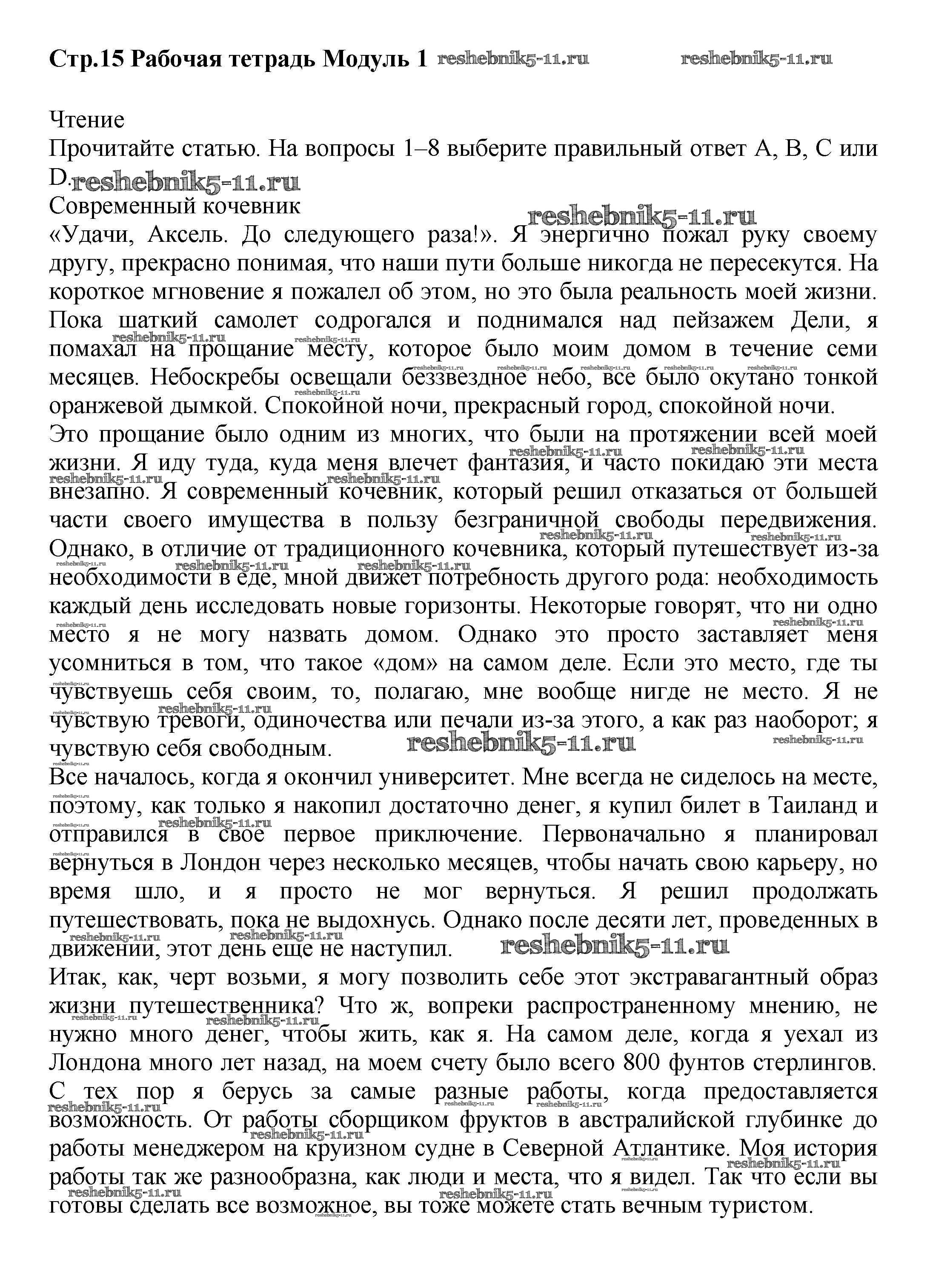Готовая домашняя работа с ответами по Английскому языку за 9 класс Баранова, Дули, Эванс, Копылова, Мильруд Рабочая тетрадь Starlight Углубленный уровень Просвещение 2017 ФГОС - Module 1 стр.15