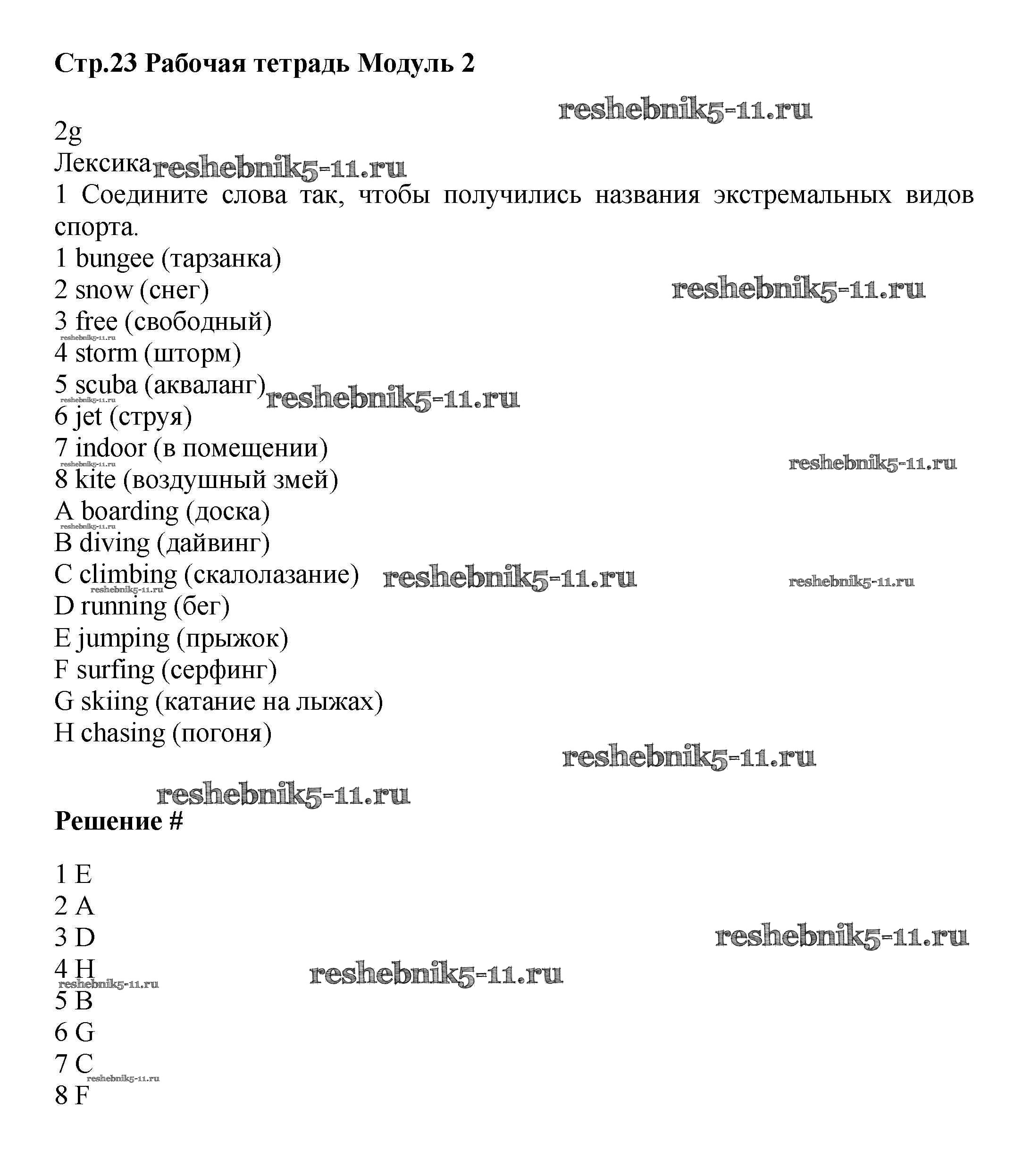 Готовая домашняя работа с ответами по Английскому языку за 9 класс Баранова, Дули, Эванс, Копылова, Мильруд Рабочая тетрадь Starlight Углубленный уровень Просвещение 2017 ФГОС - Module 2 стр.23