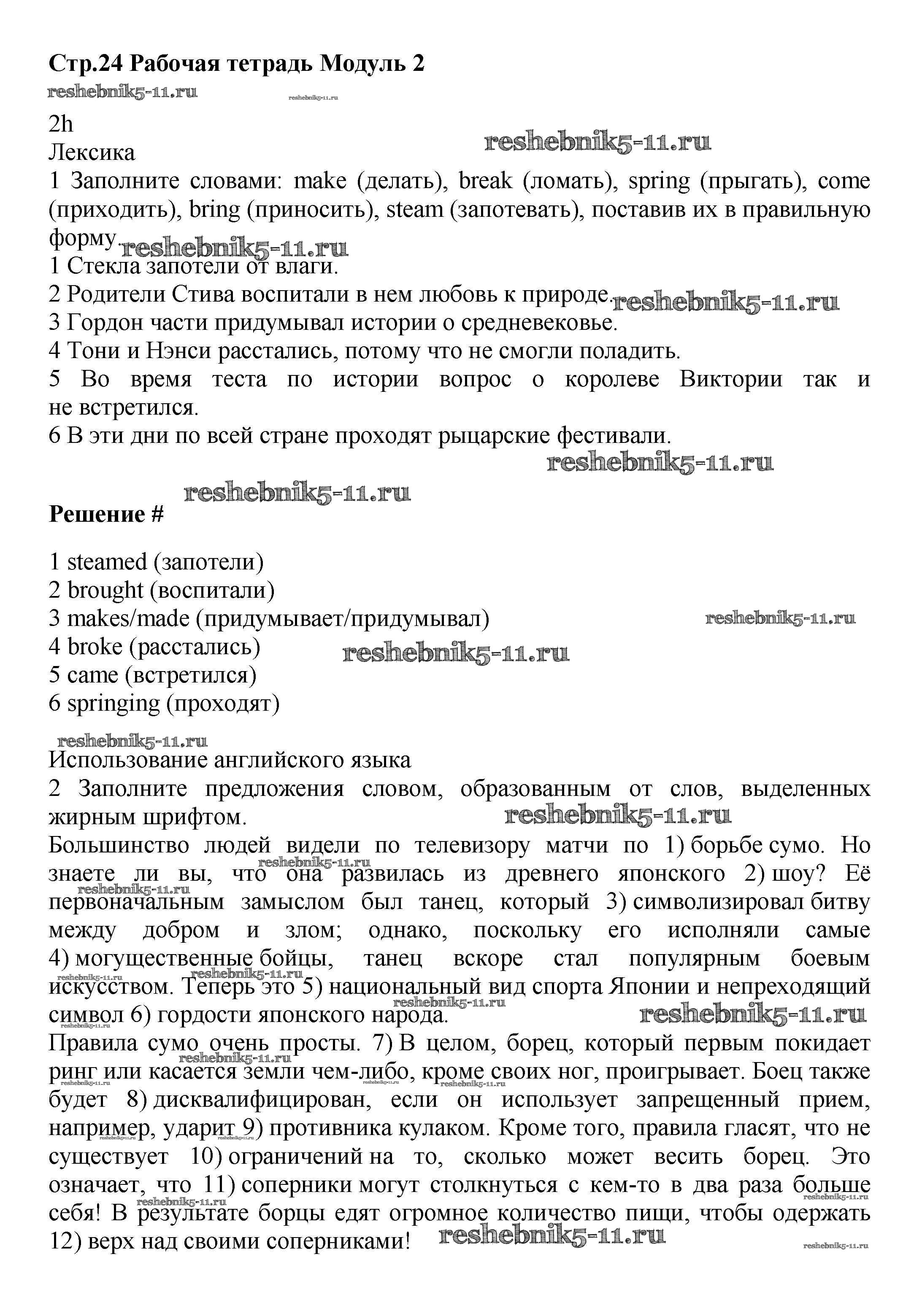 Готовая домашняя работа с ответами по Английскому языку за 9 класс Баранова, Дули, Эванс, Копылова, Мильруд Рабочая тетрадь Starlight Углубленный уровень Просвещение 2017 ФГОС - Module 2 стр.24