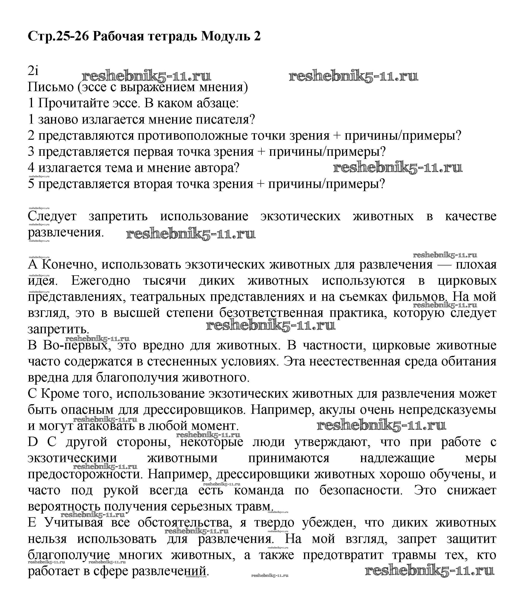Готовая домашняя работа с ответами по Английскому языку за 9 класс Баранова, Дули, Эванс, Копылова, Мильруд Рабочая тетрадь Starlight Углубленный уровень Просвещение 2017 ФГОС - Module 2 стр.25-26