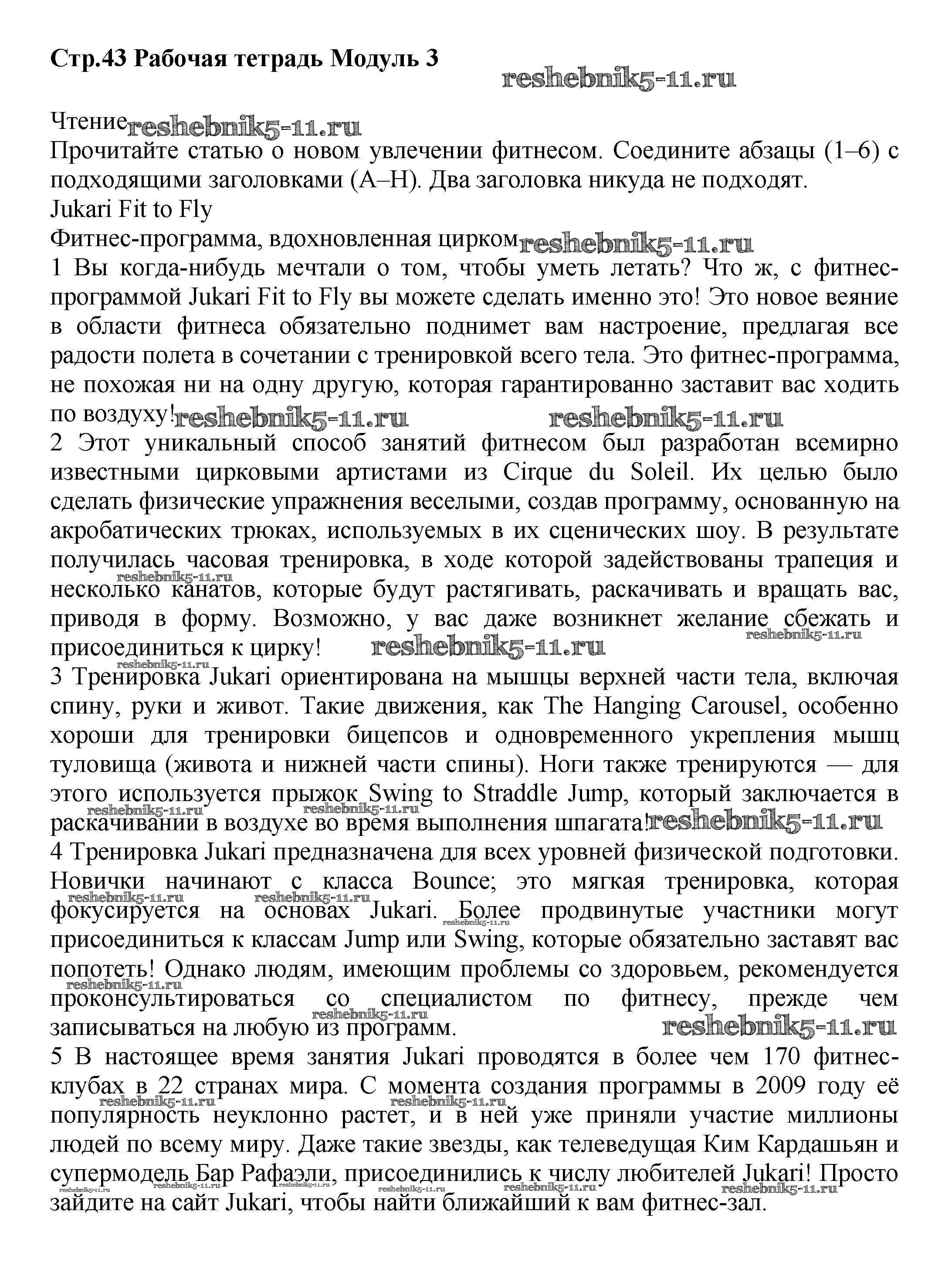 Готовая домашняя работа с ответами по Английскому языку за 9 класс Баранова, Дули, Эванс, Копылова, Мильруд Рабочая тетрадь Starlight Углубленный уровень Просвещение 2017 ФГОС - Module 3 стр.43