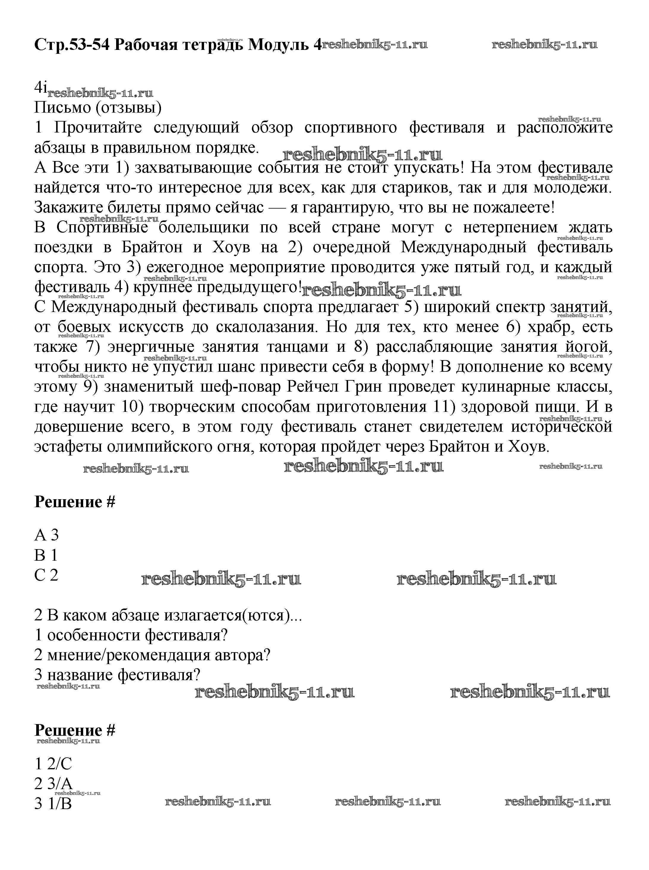 Готовая домашняя работа с ответами по Английскому языку за 9 класс Баранова, Дули, Эванс, Копылова, Мильруд Рабочая тетрадь Starlight Углубленный уровень Просвещение 2017 ФГОС - Module 4 стр.53-54