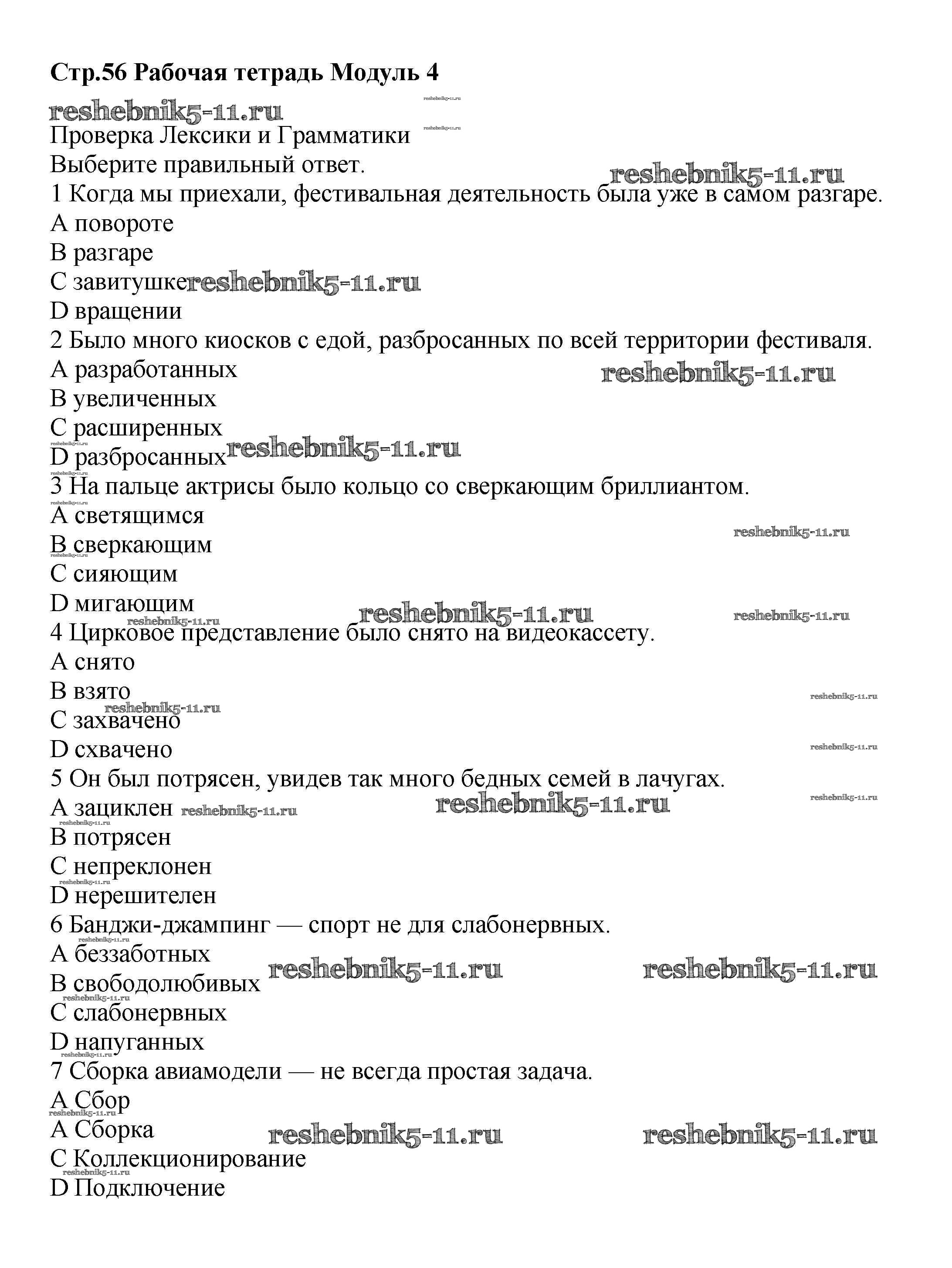 Готовая домашняя работа с ответами по Английскому языку за 9 класс Баранова, Дули, Эванс, Копылова, Мильруд Рабочая тетрадь Starlight Углубленный уровень Просвещение 2017 ФГОС - Module 4 стр.56