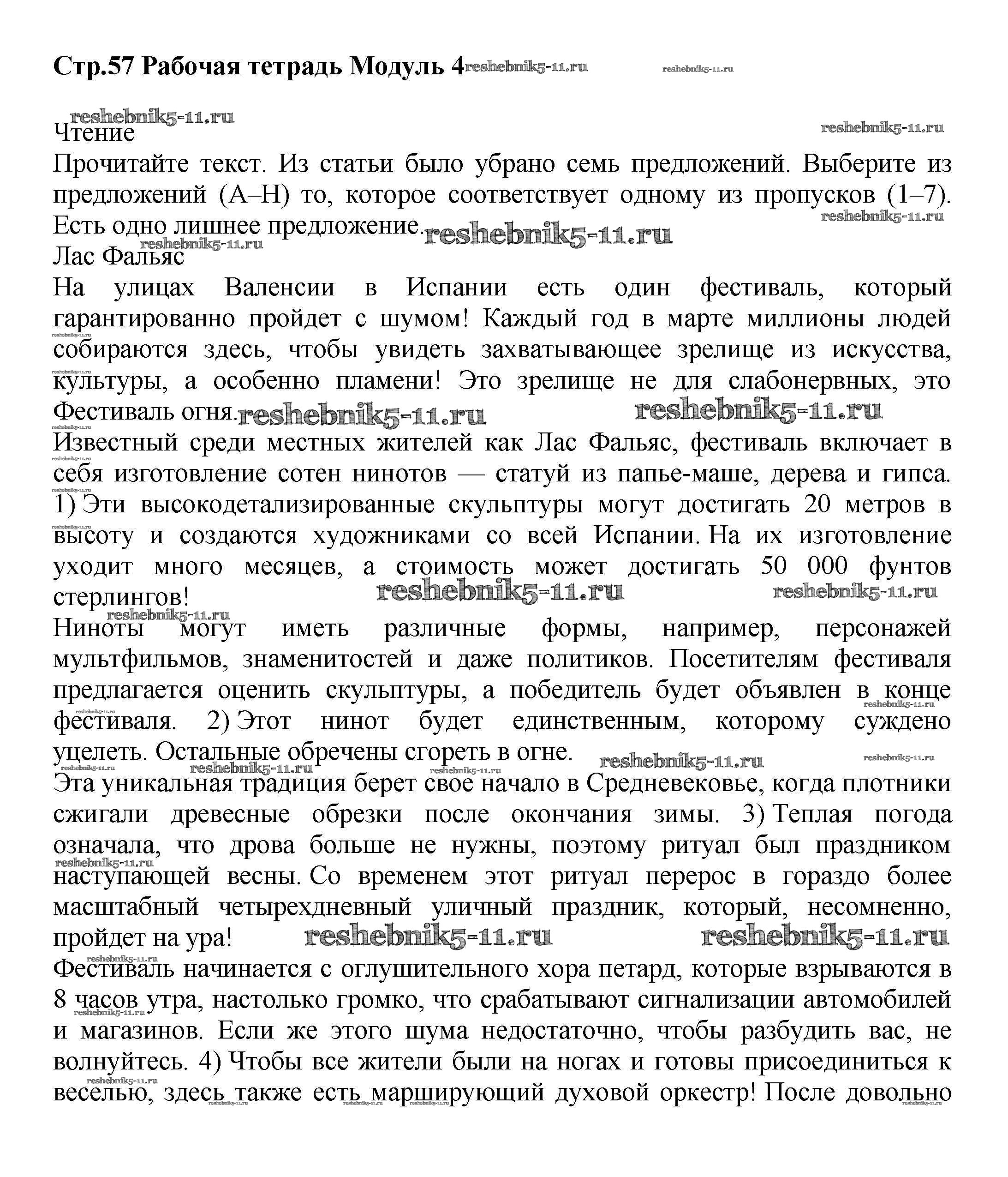 Готовая домашняя работа с ответами по Английскому языку за 9 класс Баранова, Дули, Эванс, Копылова, Мильруд Рабочая тетрадь Starlight Углубленный уровень Просвещение 2017 ФГОС - Module 4 стр.57