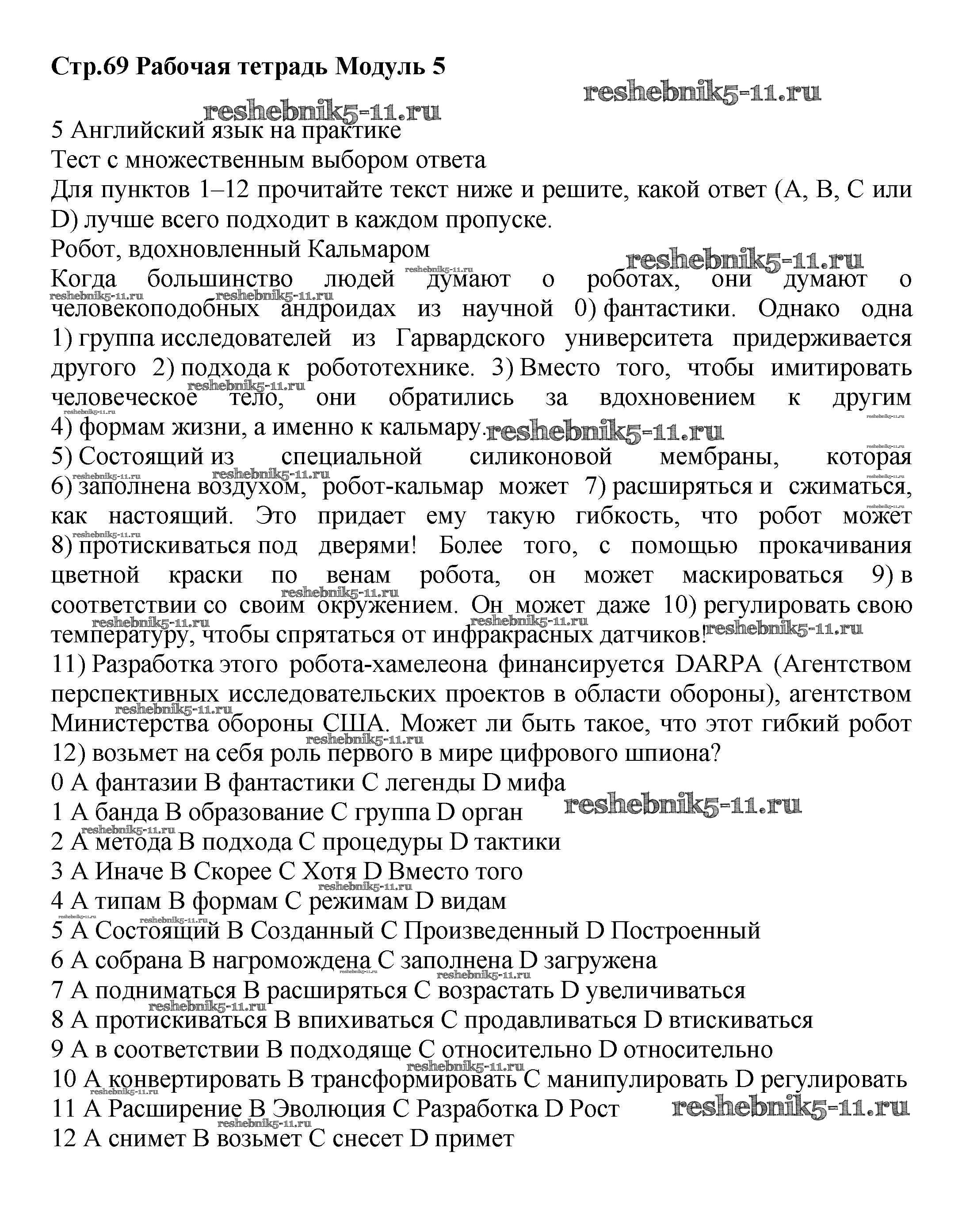 Готовая домашняя работа с ответами по Английскому языку за 9 класс Баранова, Дули, Эванс, Копылова, Мильруд Рабочая тетрадь Starlight Углубленный уровень Просвещение 2017 ФГОС - Module 5 стр.69