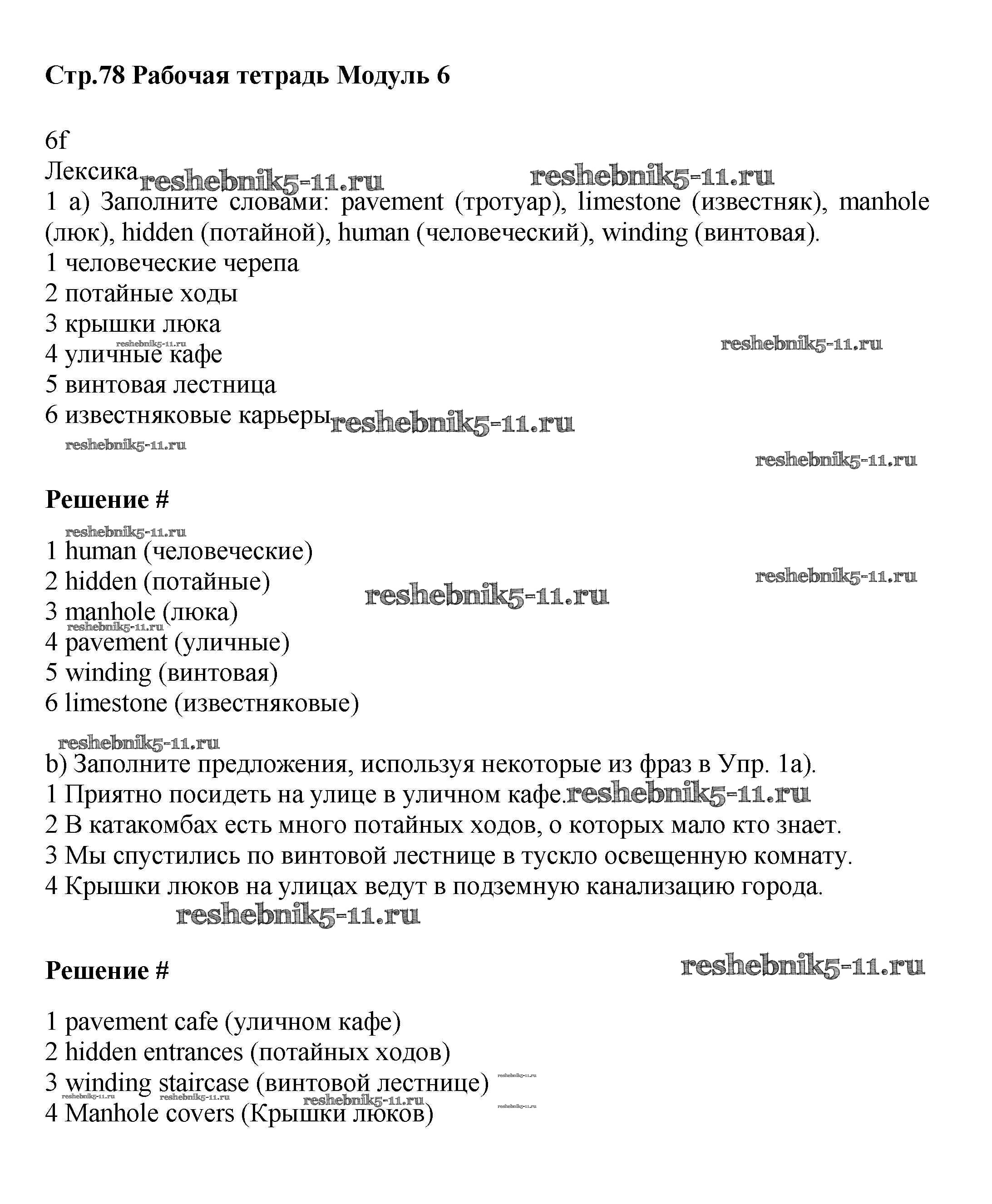 Готовая домашняя работа с ответами по Английскому языку за 9 класс Баранова, Дули, Эванс, Копылова, Мильруд Рабочая тетрадь Starlight Углубленный уровень Просвещение 2017 ФГОС - Module 6 стр.78