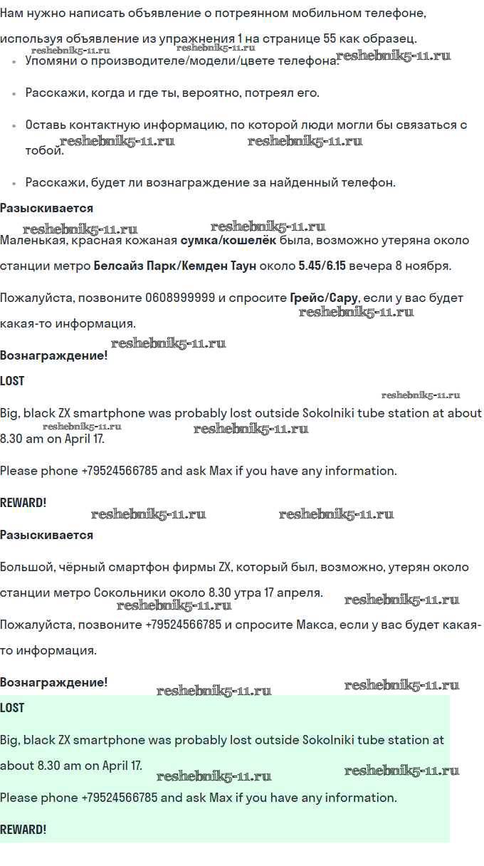 Готовая домашняя работа с ответами по Английскому языку за 9 класс Вербицкая, Маккинли, Хастингс, Миндрул, Твердохлебова Учебник Forward Вентана-граф 2016 ФГОС - Страницы 55
