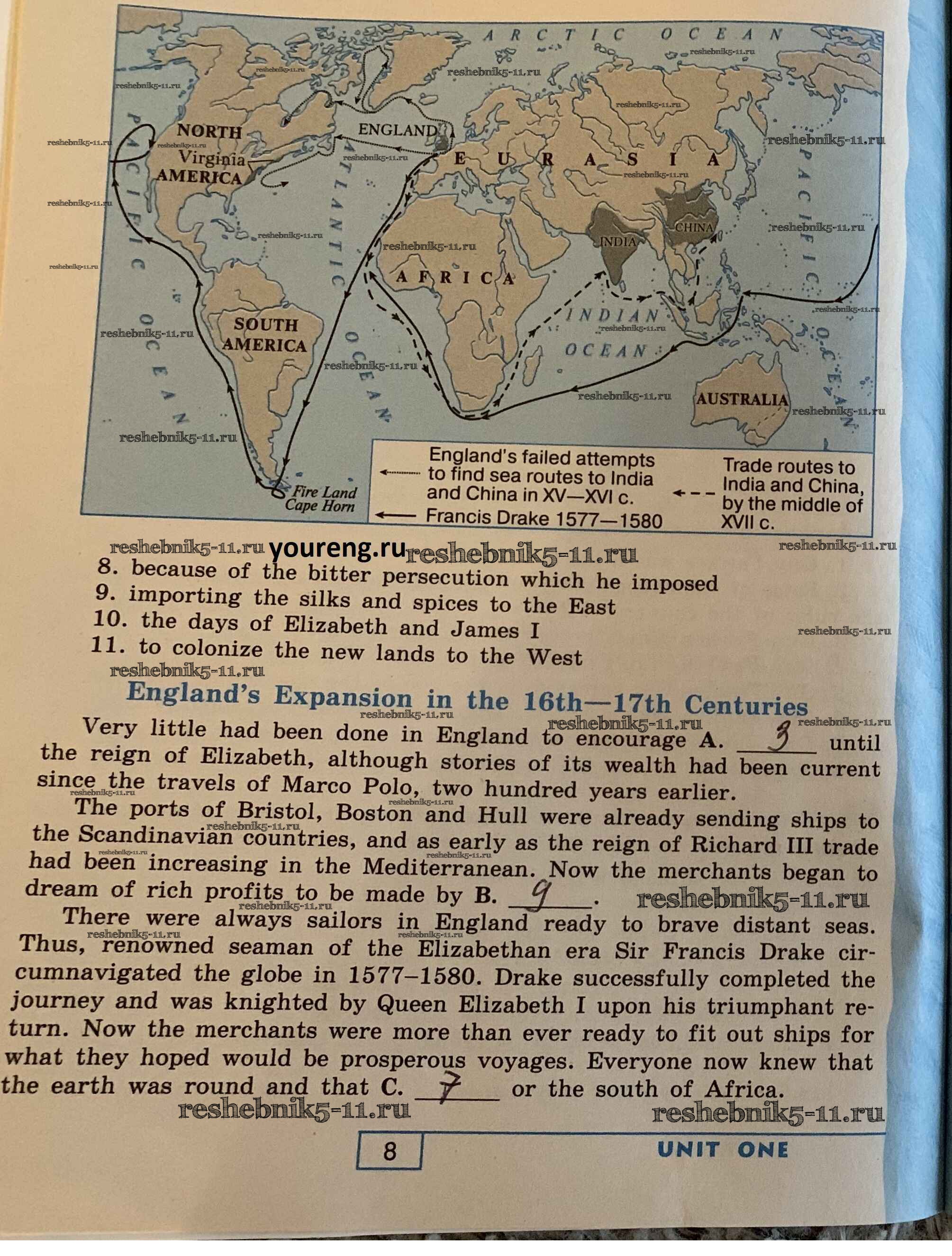 Готовая домашняя работа с ответами по Английскому языку за 9 класс Афанасьева, Михеева, Баранова, Петрова Рабочая тетрадь УМК Углубленный уровень Просвещение 2016 ФГОС - Unit 1. Pages of History: Linking Past and Present стр. 8