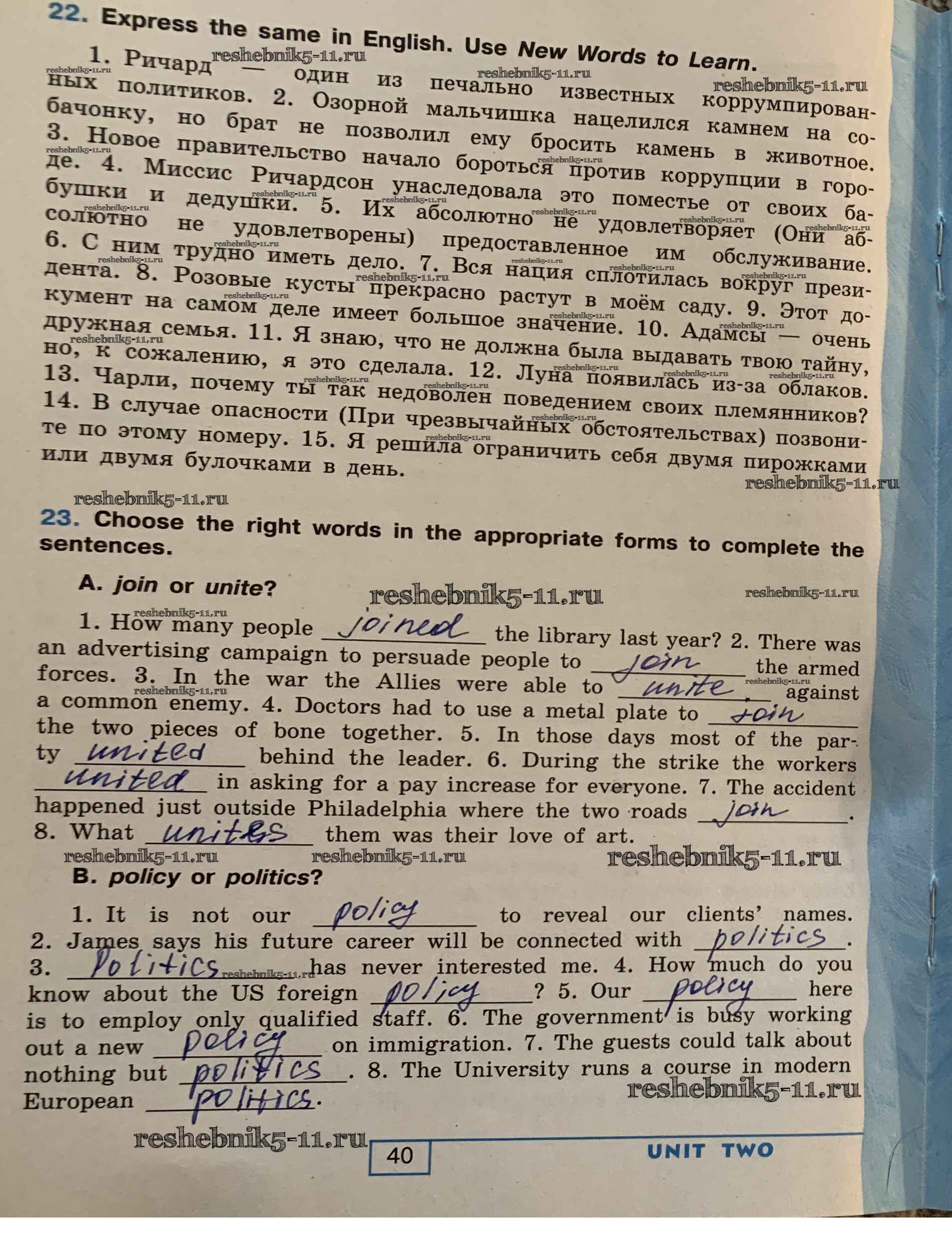 Готовая домашняя работа с ответами по Английскому языку за 9 класс Афанасьева, Михеева, Баранова, Петрова Рабочая тетрадь УМК Углубленный уровень Просвещение 2016 ФГОС - Unit 2. People and Society стр. 40
