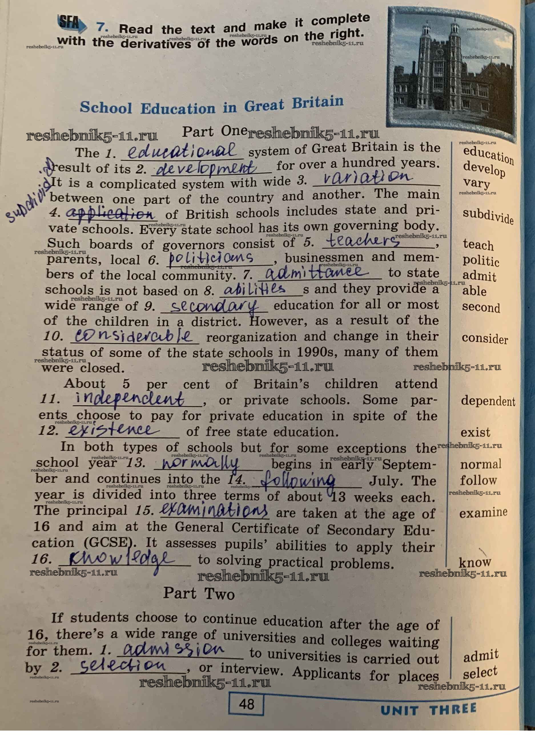 Готовая домашняя работа с ответами по Английскому языку за 9 класс Афанасьева, Михеева, Баранова, Петрова Рабочая тетрадь УМК Углубленный уровень Просвещение 2016 ФГОС - Unit 3. You Are Only a Teenager Once стр. 48