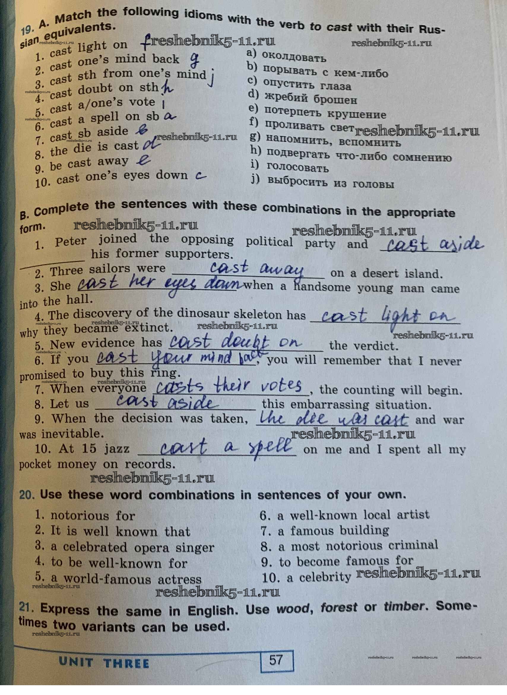Готовая домашняя работа с ответами по Английскому языку за 9 класс Афанасьева, Михеева, Баранова, Петрова Рабочая тетрадь УМК Углубленный уровень Просвещение 2016 ФГОС - Unit 3. You Are Only a Teenager Once стр. 57
