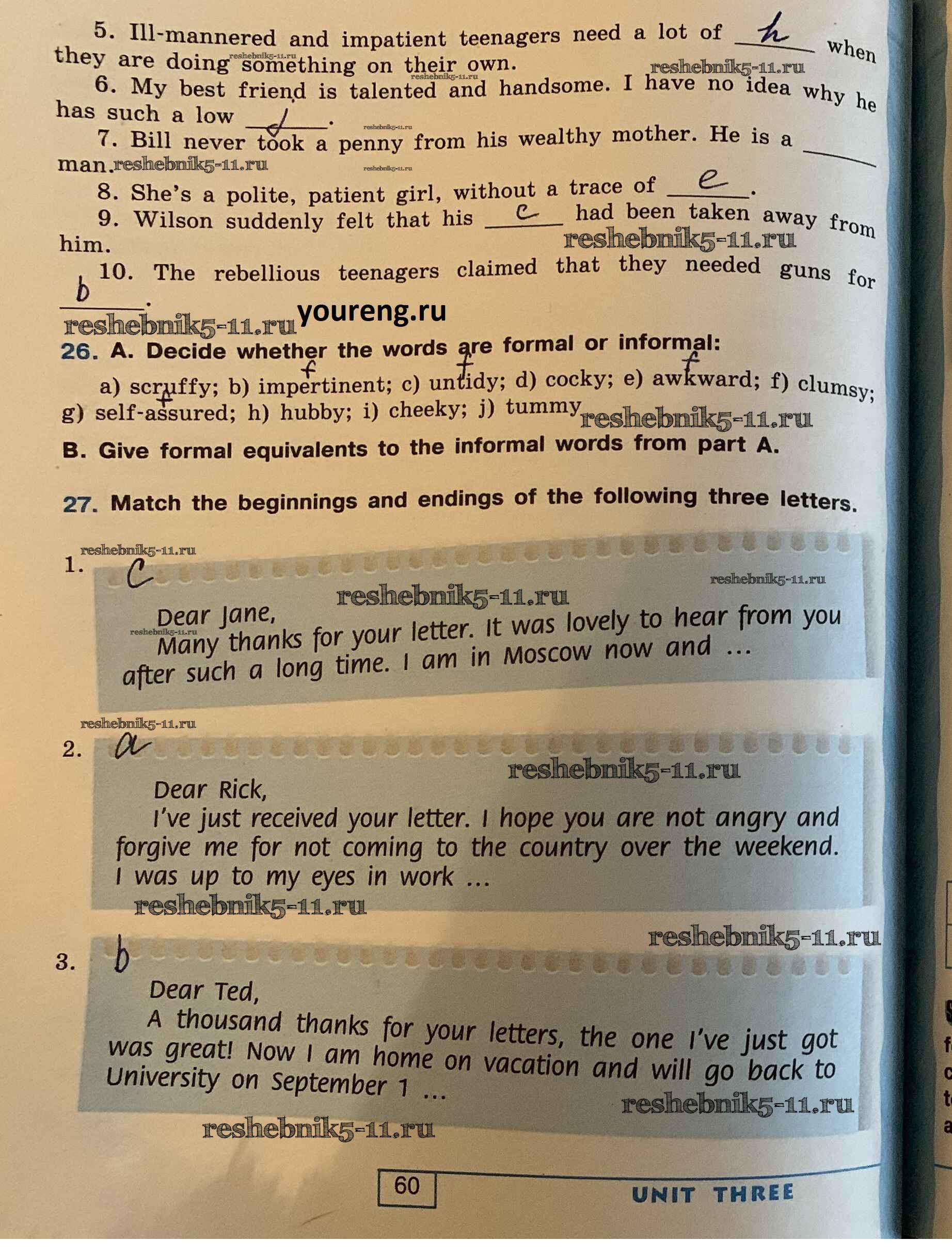 Готовая домашняя работа с ответами по Английскому языку за 9 класс Афанасьева, Михеева, Баранова, Петрова Рабочая тетрадь УМК Углубленный уровень Просвещение 2016 ФГОС - Unit 3. You Are Only a Teenager Once стр. 60