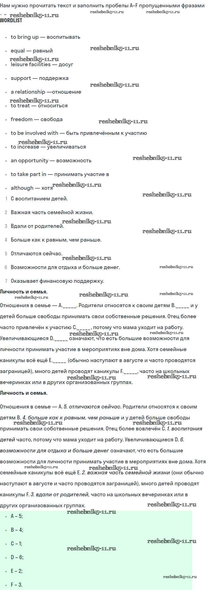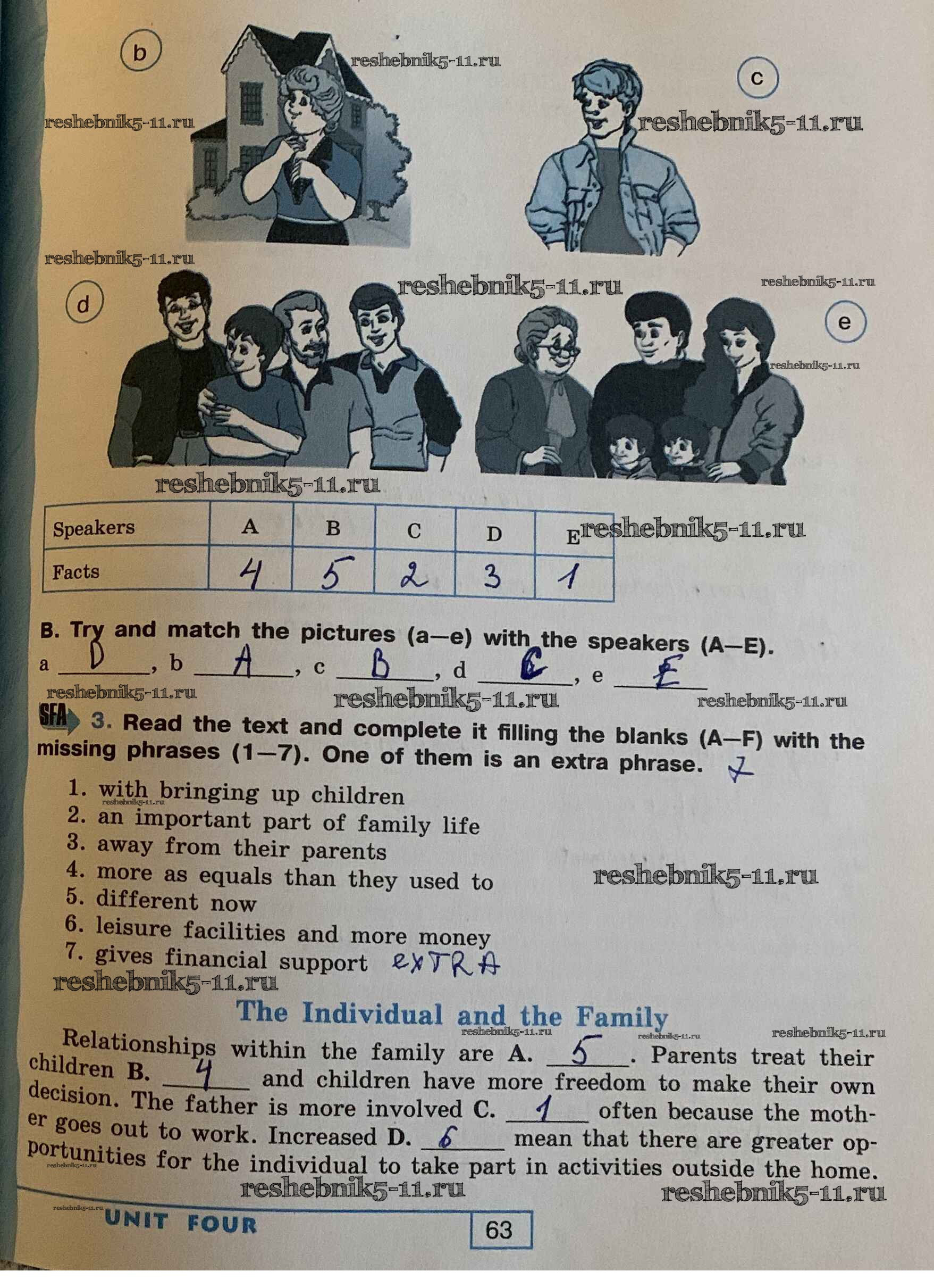 Готовая домашняя работа с ответами по Английскому языку за 9 класс Афанасьева, Михеева, Баранова, Петрова Рабочая тетрадь УМК Углубленный уровень Просвещение 2016 ФГОС - Unit 4. Family Matters стр. 63