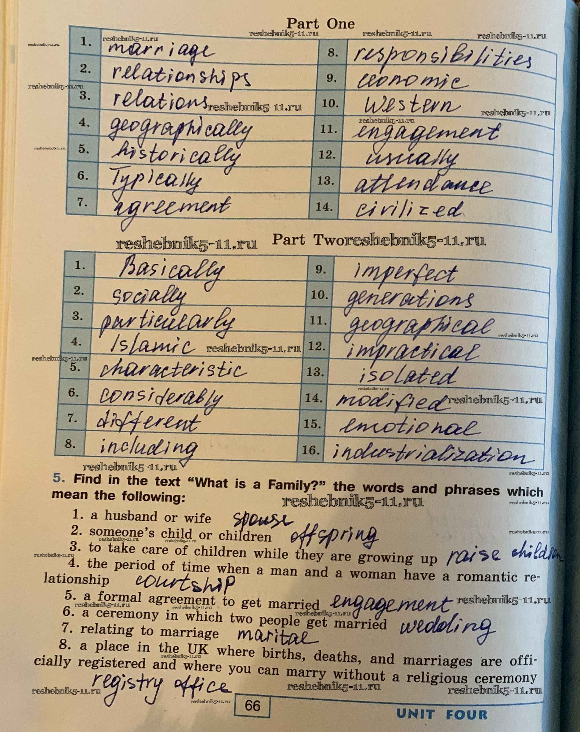 Готовая домашняя работа с ответами по Английскому языку за 9 класс Афанасьева, Михеева, Баранова, Петрова Рабочая тетрадь УМК Углубленный уровень Просвещение 2016 ФГОС - Unit 4. Family Matters стр. 66