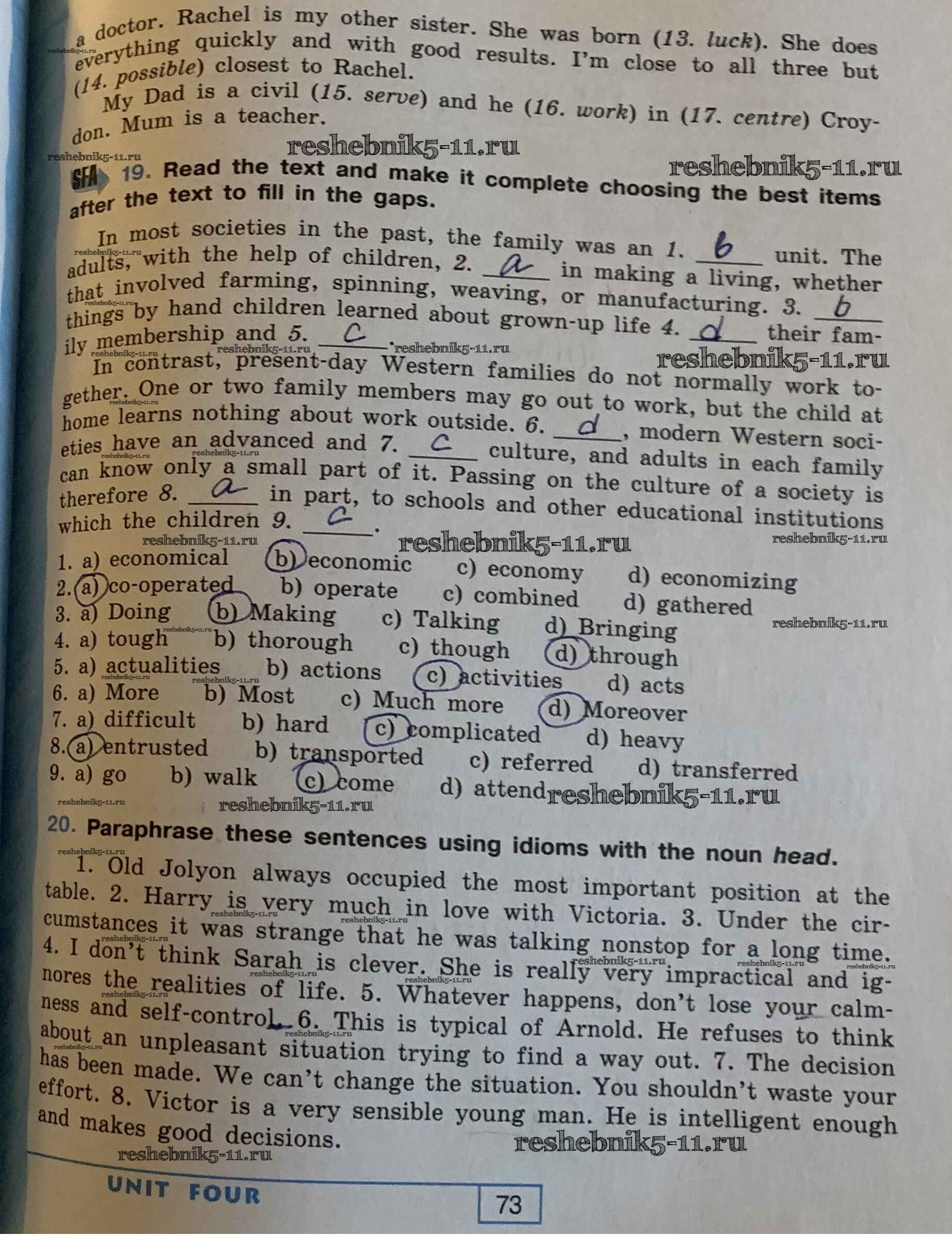 Готовая домашняя работа с ответами по Английскому языку за 9 класс Афанасьева, Михеева, Баранова, Петрова Рабочая тетрадь УМК Углубленный уровень Просвещение 2016 ФГОС - Unit 4. Family Matters стр. 73