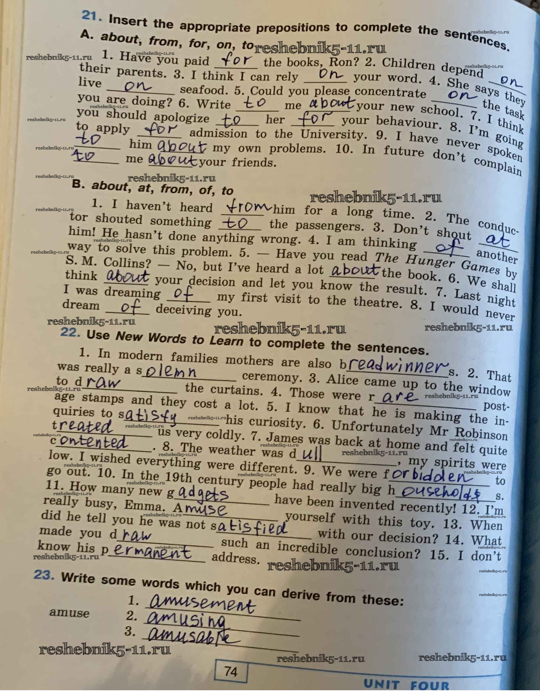 Готовая домашняя работа с ответами по Английскому языку за 9 класс Афанасьева, Михеева, Баранова, Петрова Рабочая тетрадь УМК Углубленный уровень Просвещение 2016 ФГОС - Unit 4. Family Matters стр. 74