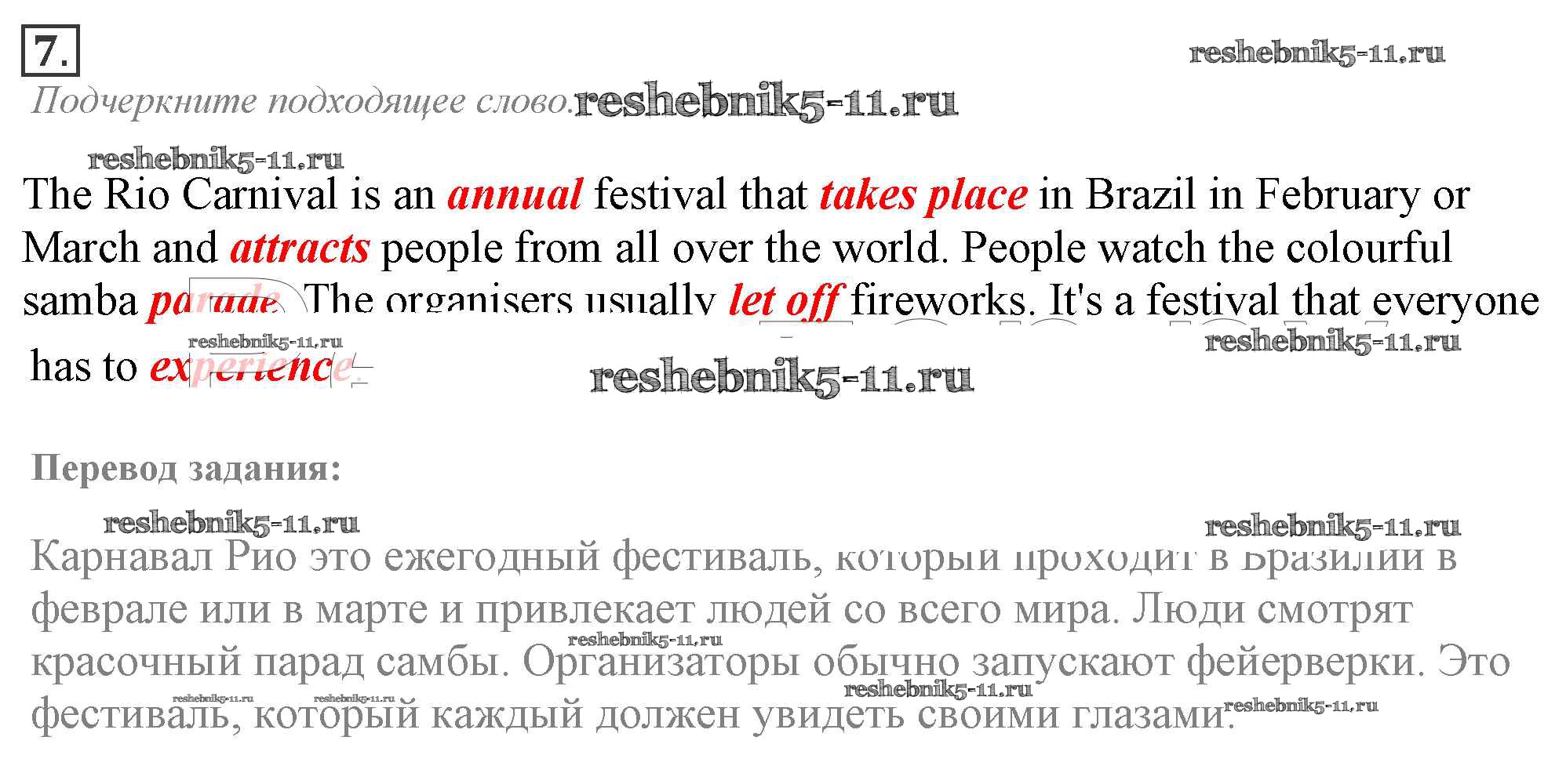 Готовая домашняя работа с ответами по Английскому языку за 9 класс Ваулина, Эванс, Дули, Подоляко Учебник Spotlight Просвещение 2010 ФГОС - Часть 1a 7