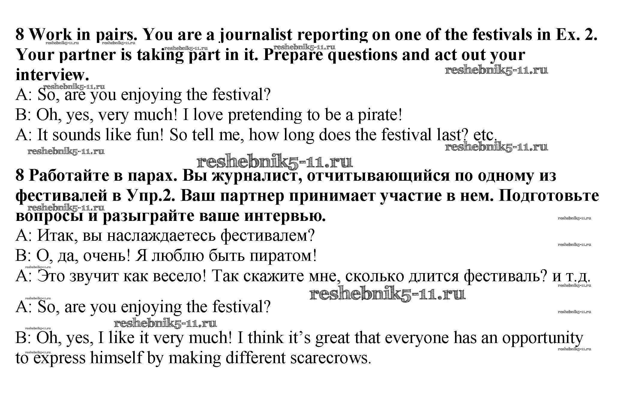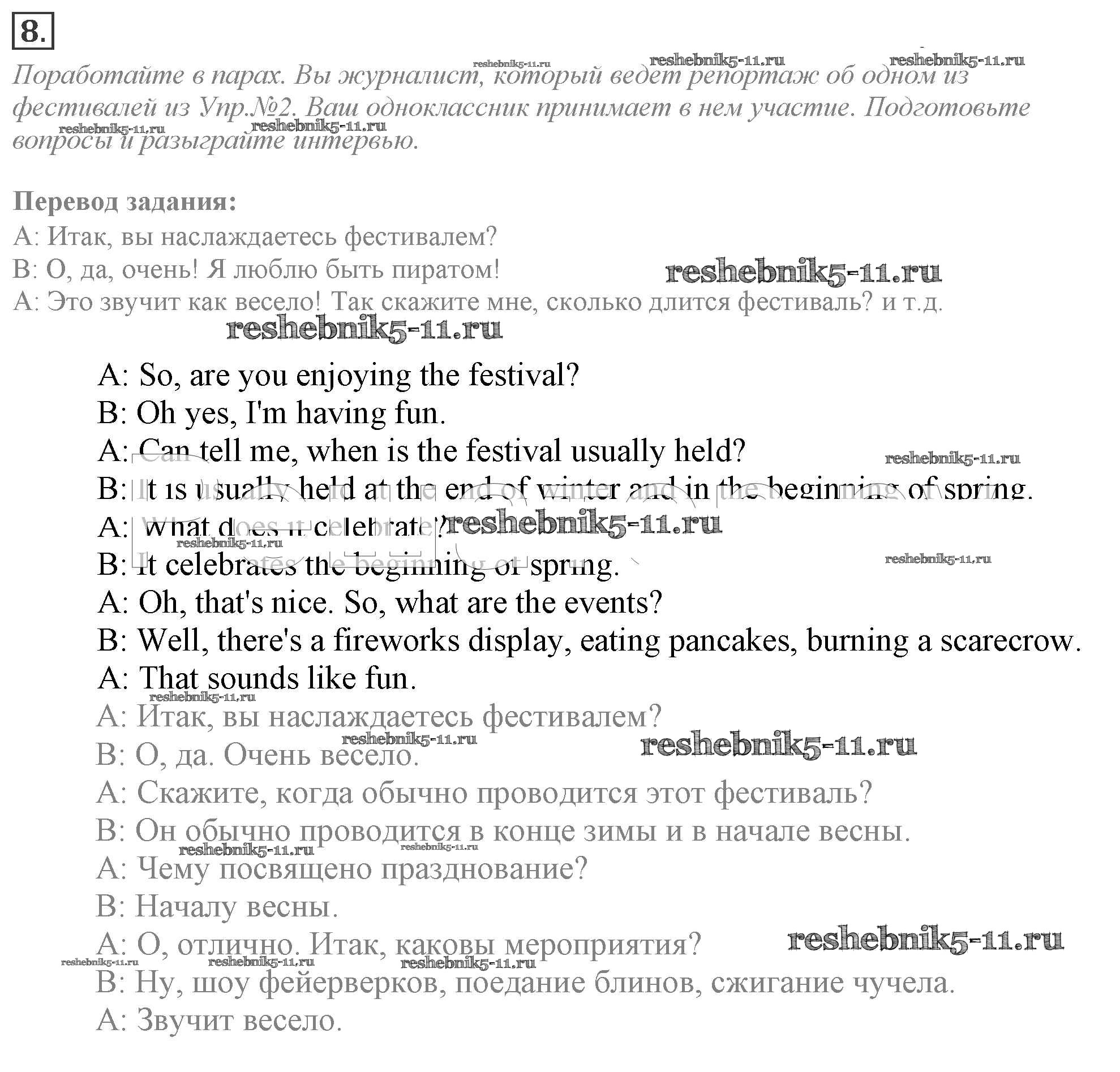Готовая домашняя работа с ответами по Английскому языку за 9 класс Ваулина, Эванс, Дули, Подоляко Учебник Spotlight Просвещение 2010 ФГОС - Часть 1a 8