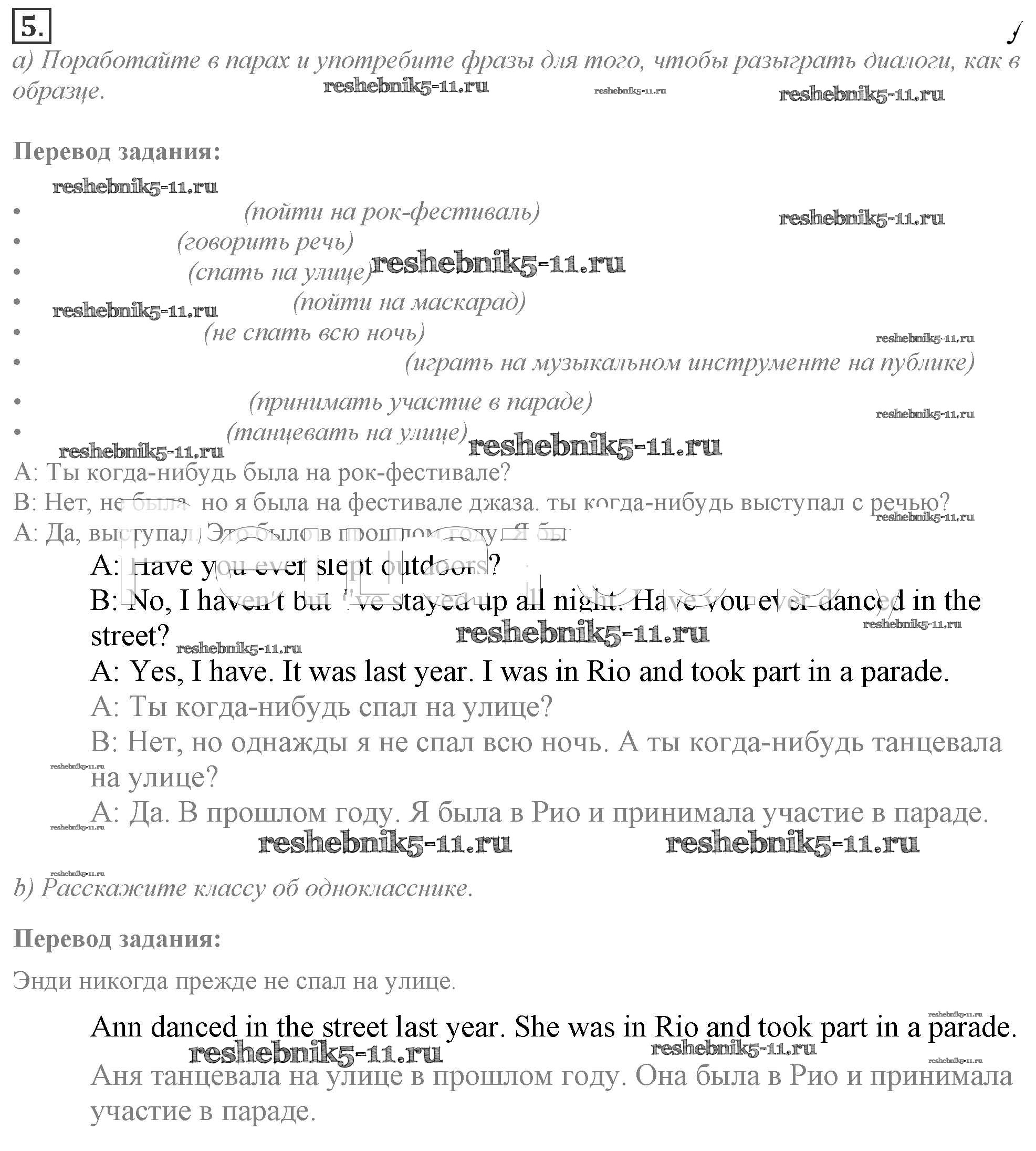 Готовая домашняя работа с ответами по Английскому языку за 9 класс Ваулина, Эванс, Дули, Подоляко Учебник Spotlight Просвещение 2010 ФГОС - Часть 1c 5a
