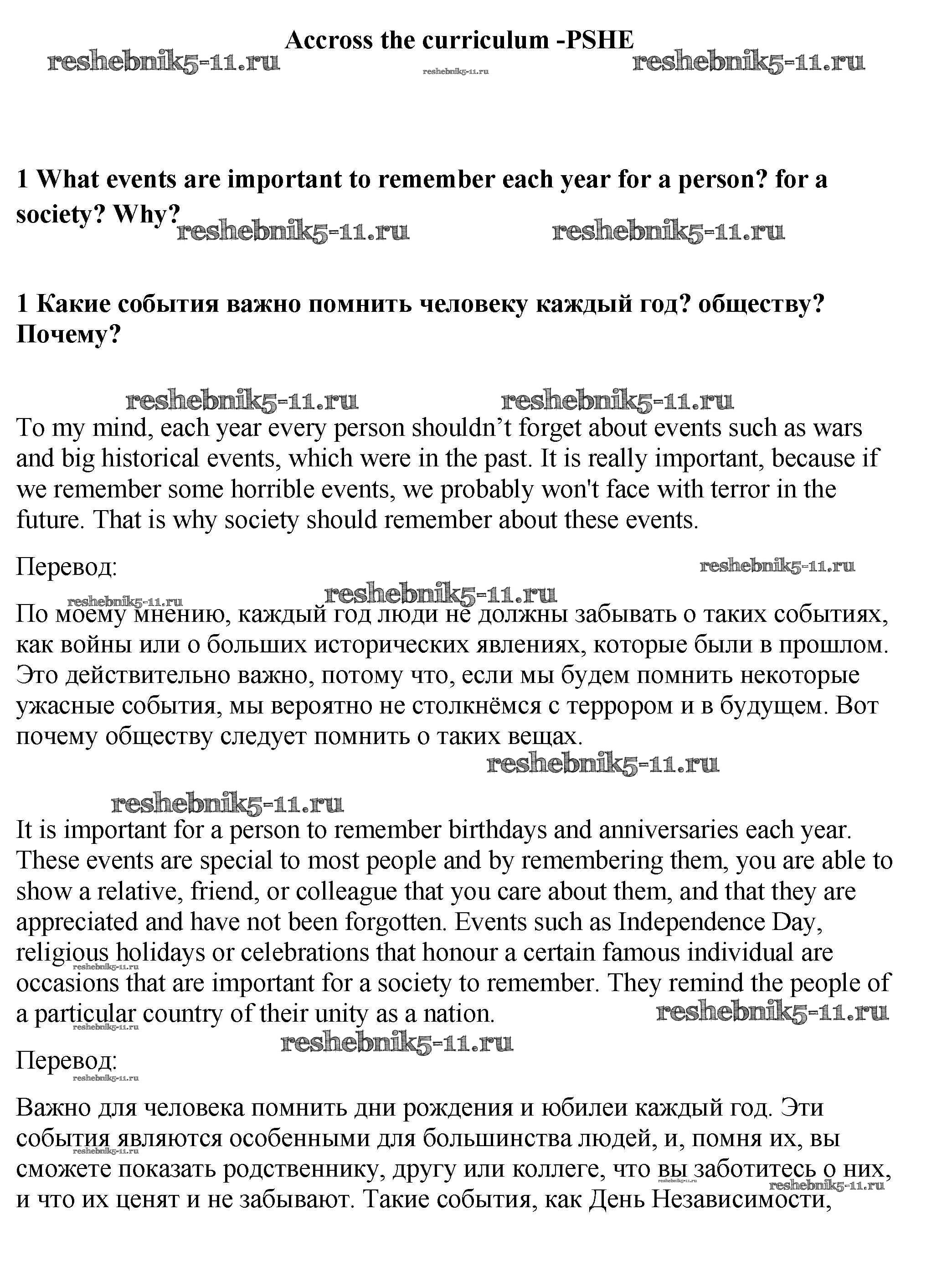 Готовая домашняя работа с ответами по Английскому языку за 9 класс Ваулина, Эванс, Дули, Подоляко Учебник Spotlight Просвещение 2010 ФГОС - Accross the curriculum PSHE 1