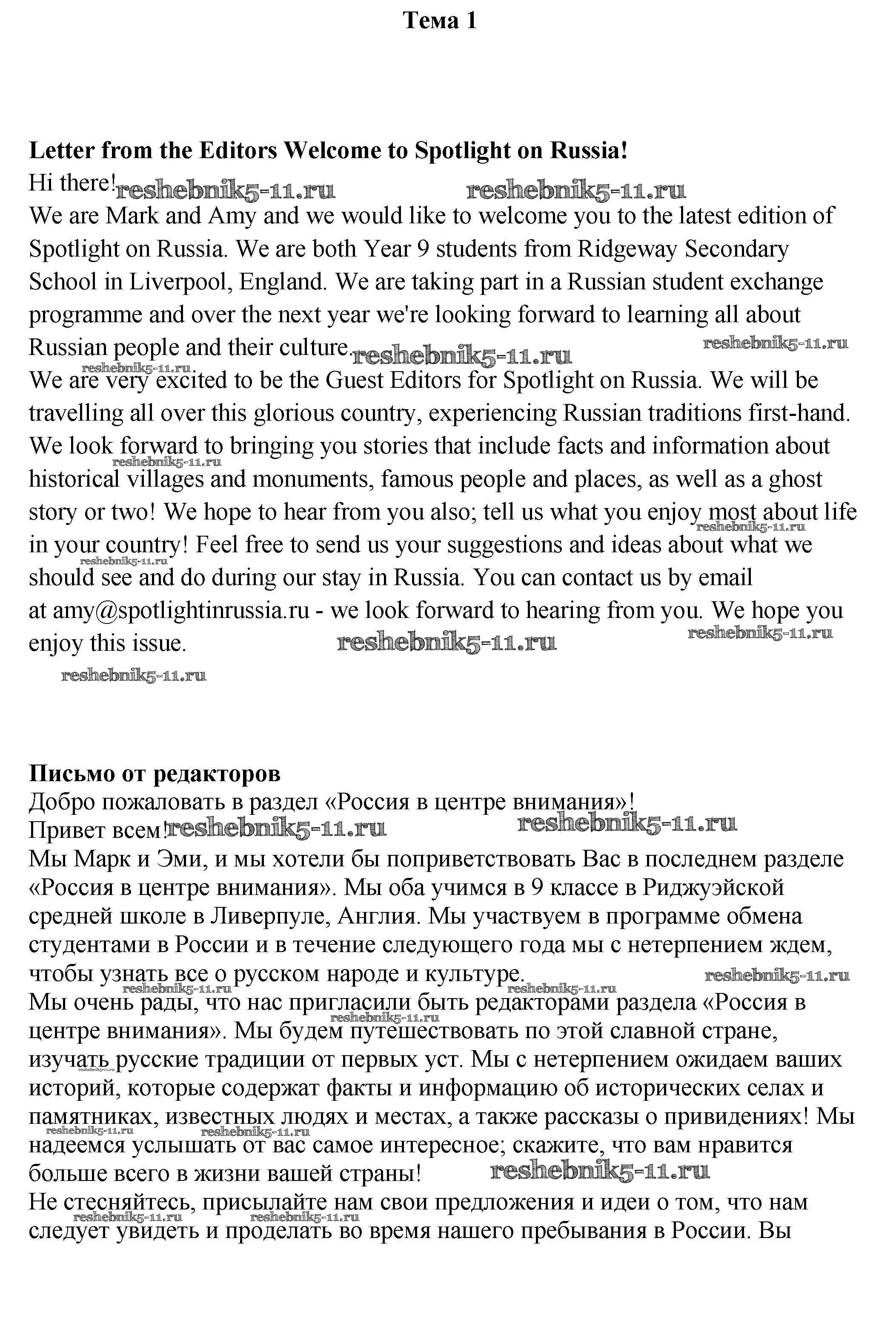 Решебник 1 / spotlights on Russia. тема / 1
