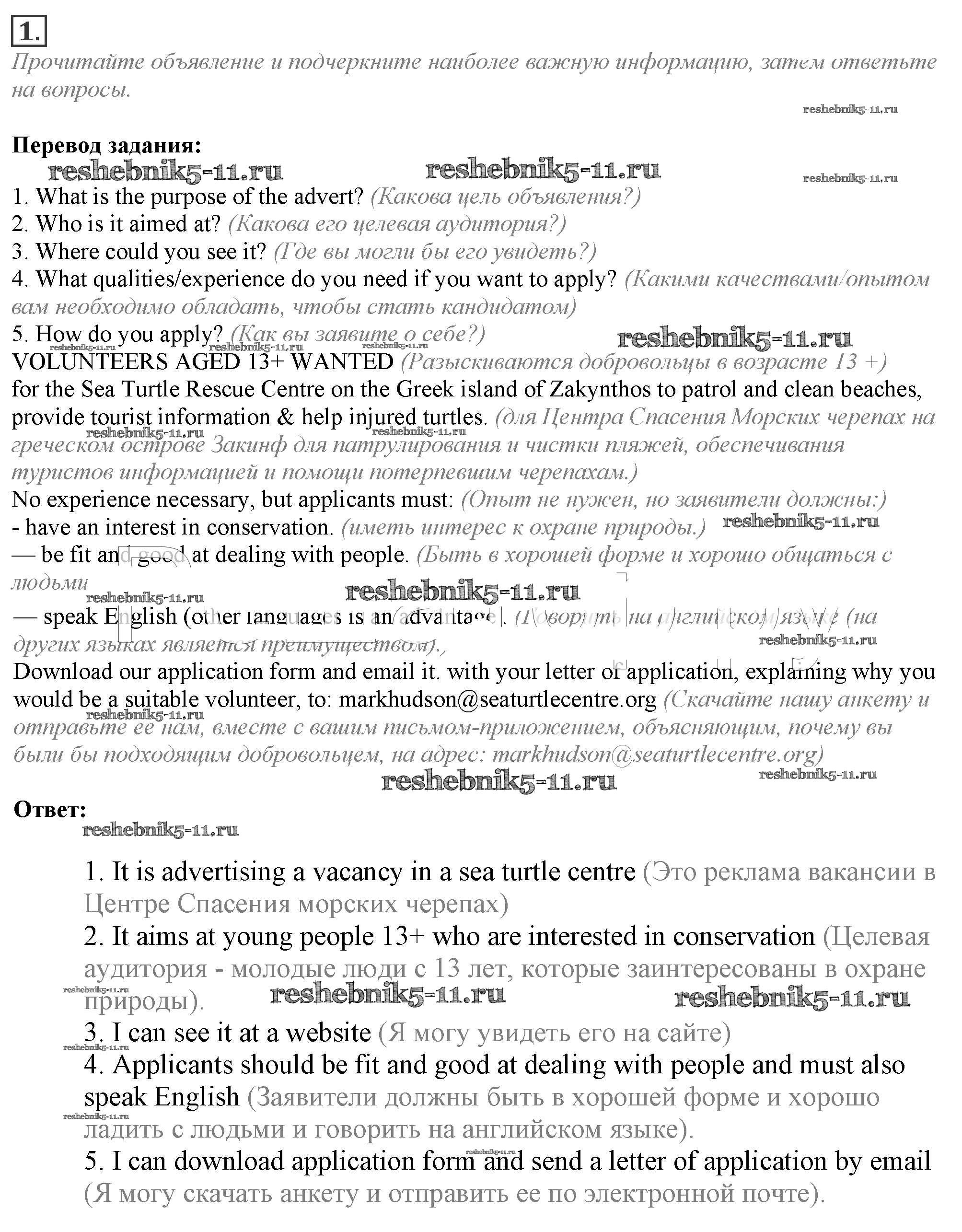 Готовая домашняя работа с ответами по Английскому языку за 9 класс Ваулина, Эванс, Дули, Подоляко Учебник Spotlight Просвещение 2010 ФГОС - Часть 8e 1