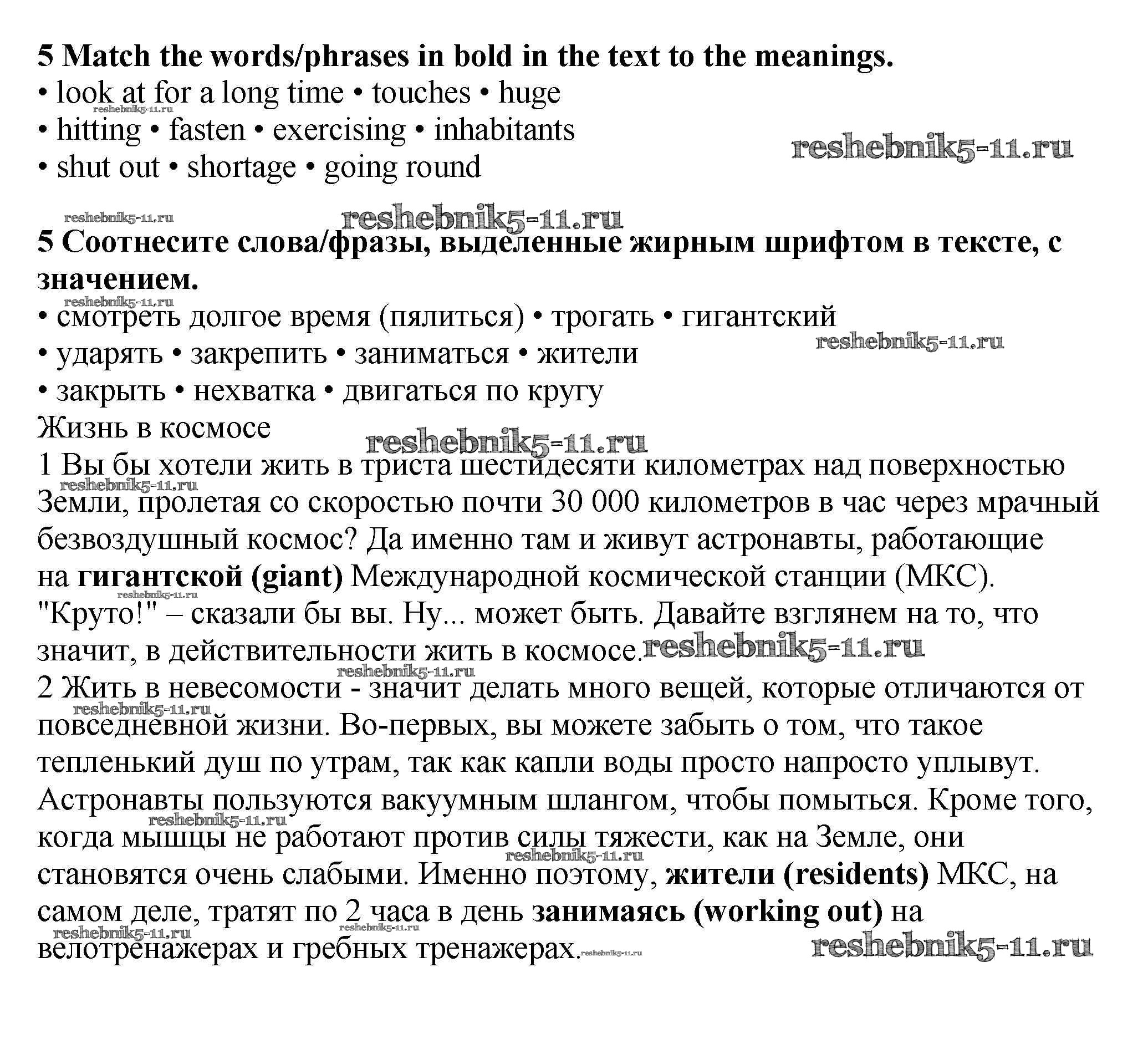 Готовая домашняя работа с ответами по Английскому языку за 9 класс Ваулина, Эванс, Дули, Подоляко Учебник Spotlight Просвещение 2010 ФГОС - Часть 2a 5