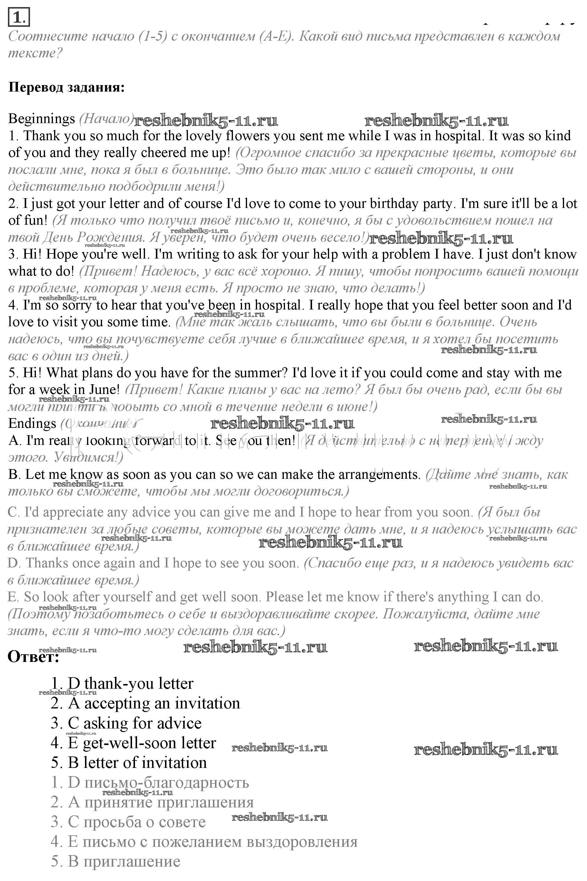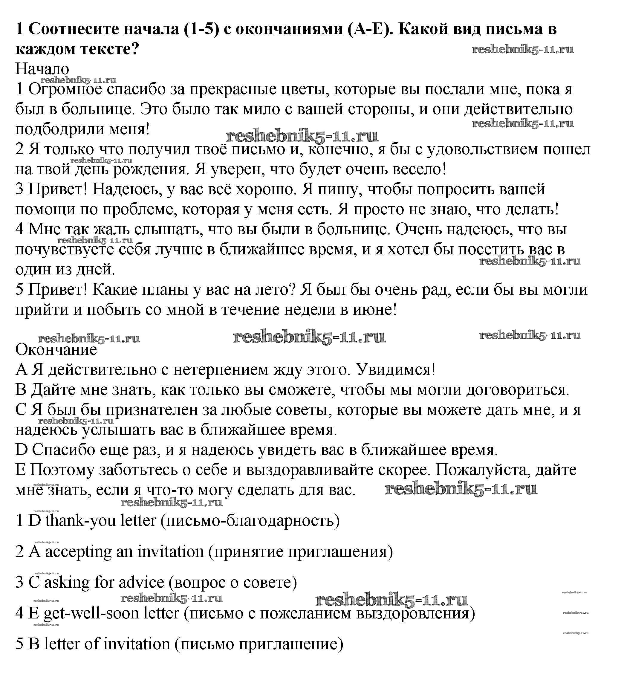 Готовая домашняя работа с ответами по Английскому языку за 9 класс Ваулина, Эванс, Дули, Подоляко Учебник Spotlight Просвещение 2010 ФГОС - Часть 2e 1