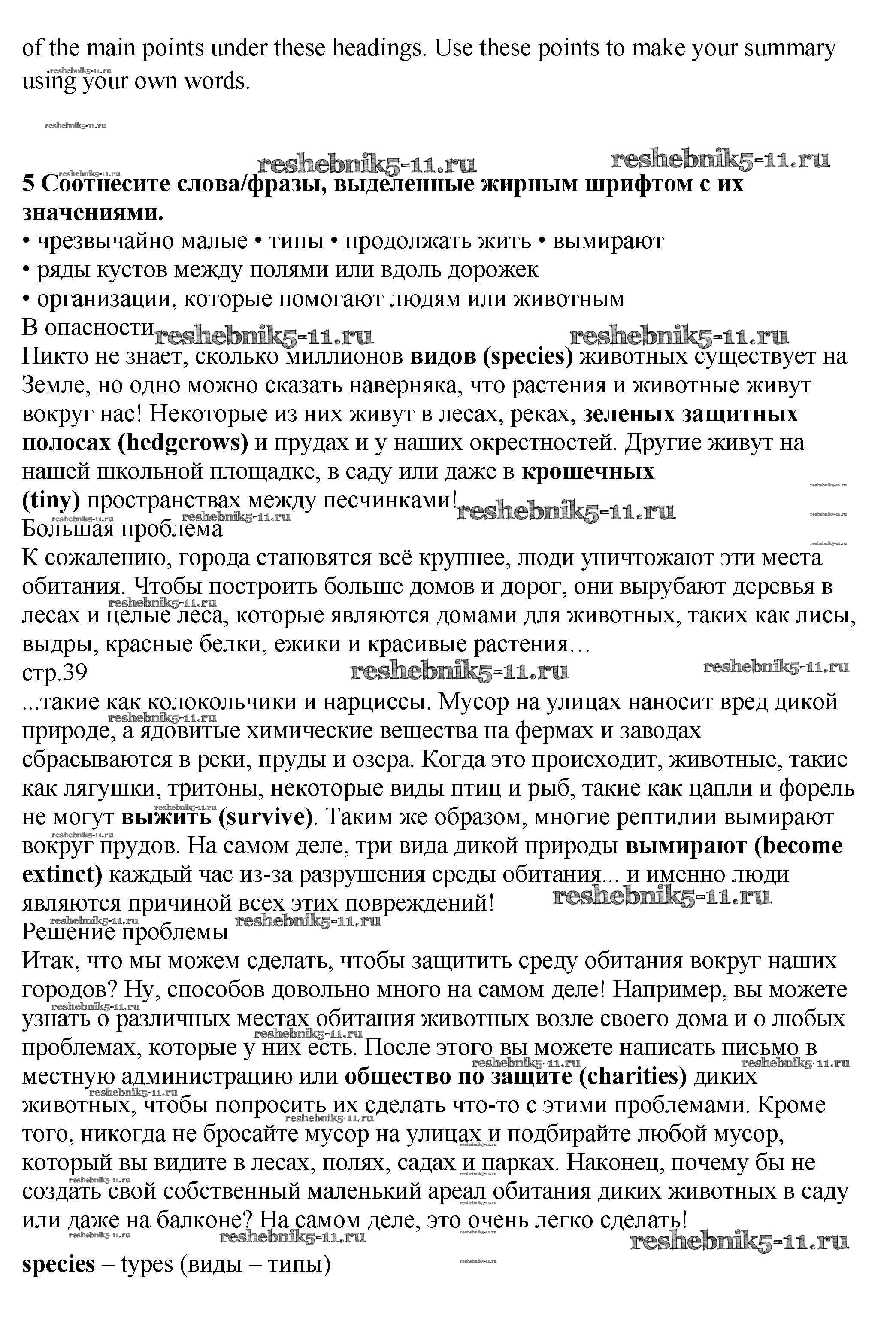 Готовая домашняя работа с ответами по Английскому языку за 9 класс Ваулина, Эванс, Дули, Подоляко Учебник Spotlight Просвещение 2010 ФГОС - Going green 5