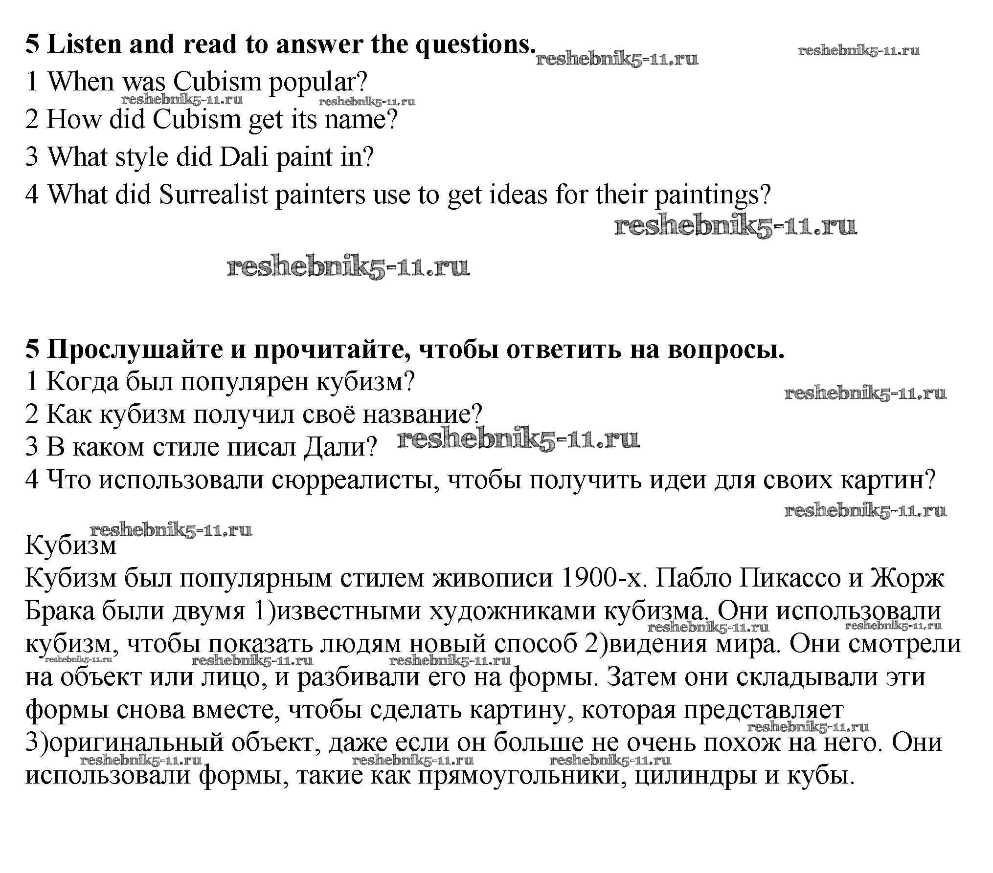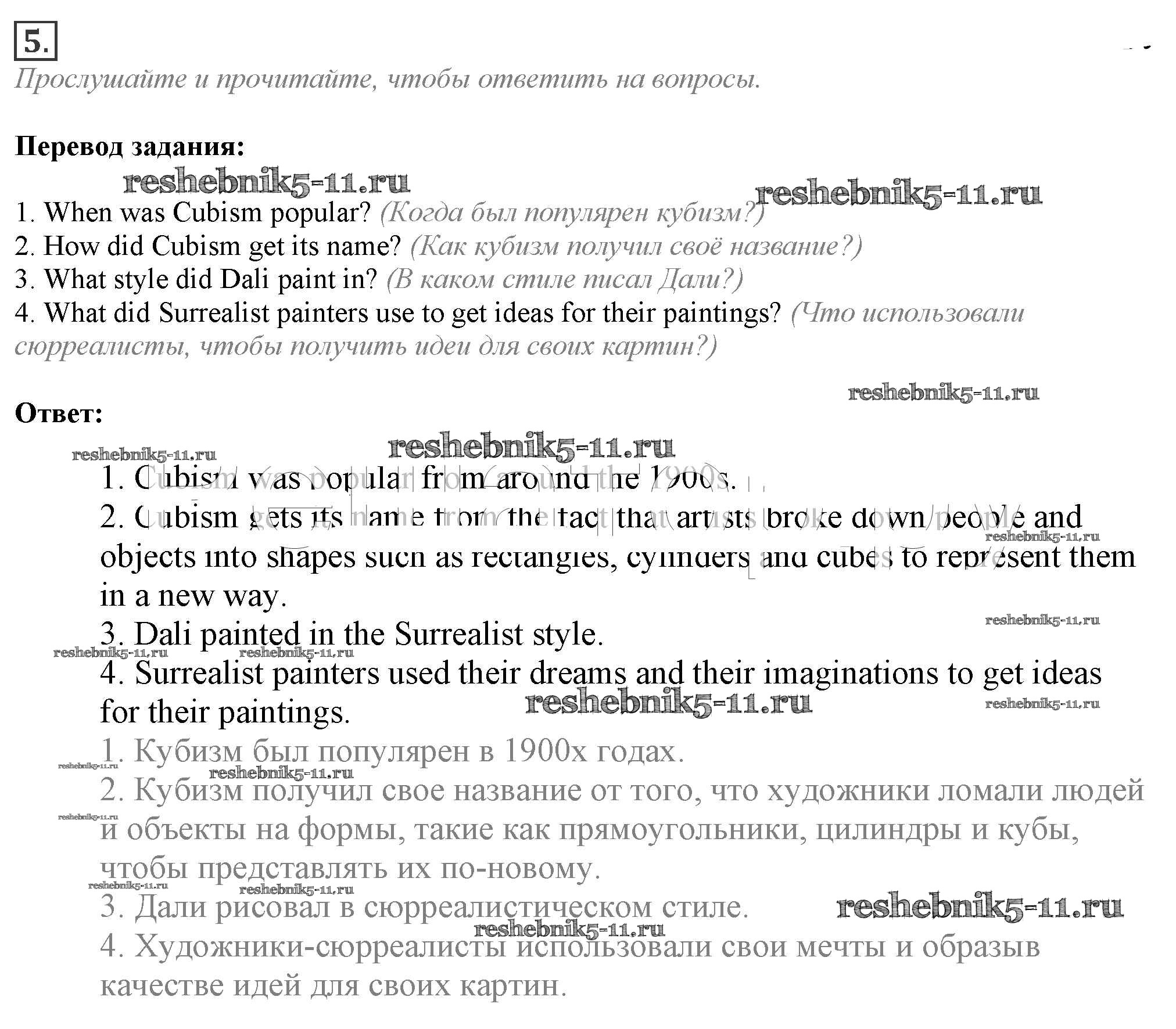 Готовая домашняя работа с ответами по Английскому языку за 9 класс Ваулина, Эванс, Дули, Подоляко Учебник Spotlight Просвещение 2010 ФГОС - Accross the curriculum Art&Design 5