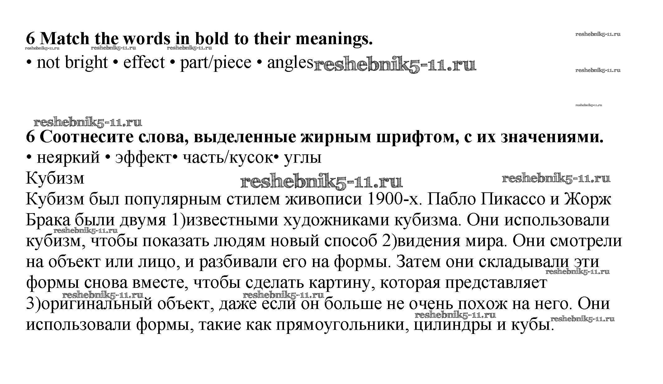 Готовая домашняя работа с ответами по Английскому языку за 9 класс Ваулина, Эванс, Дули, Подоляко Учебник Spotlight Просвещение 2010 ФГОС - Accross the curriculum Art&Design 6