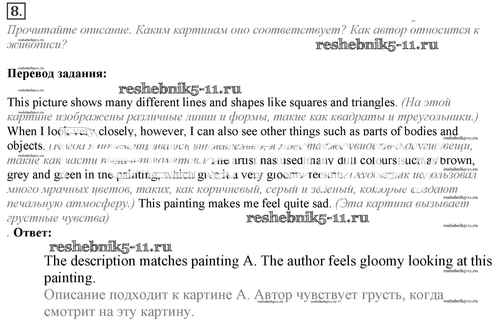 Готовая домашняя работа с ответами по Английскому языку за 9 класс Ваулина, Эванс, Дули, Подоляко Учебник Spotlight Просвещение 2010 ФГОС - Accross the curriculum Art&Design 8