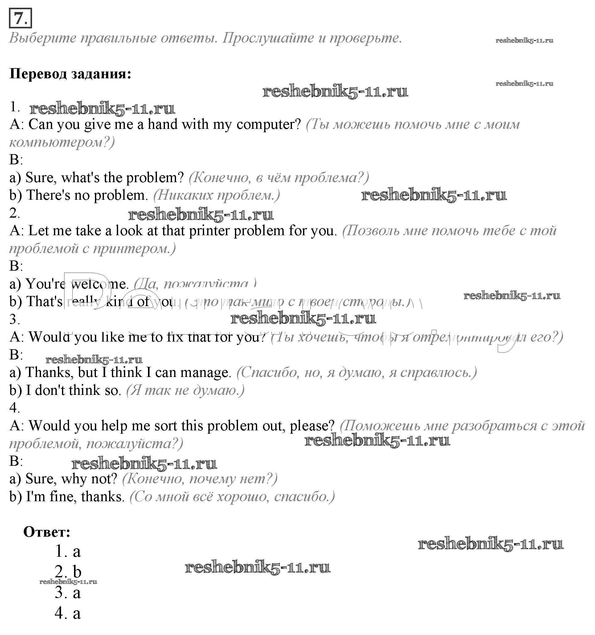 Готовая домашняя работа с ответами по Английскому языку за 9 класс Ваулина, Эванс, Дули, Подоляко Учебник Spotlight Просвещение 2010 ФГОС - Часть 4b 7