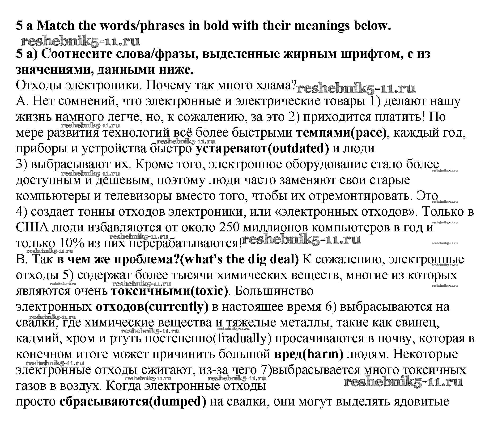 Готовая домашняя работа с ответами по Английскому языку за 9 класс Ваулина, Эванс, Дули, Подоляко Учебник Spotlight Просвещение 2010 ФГОС - Going Green 5a