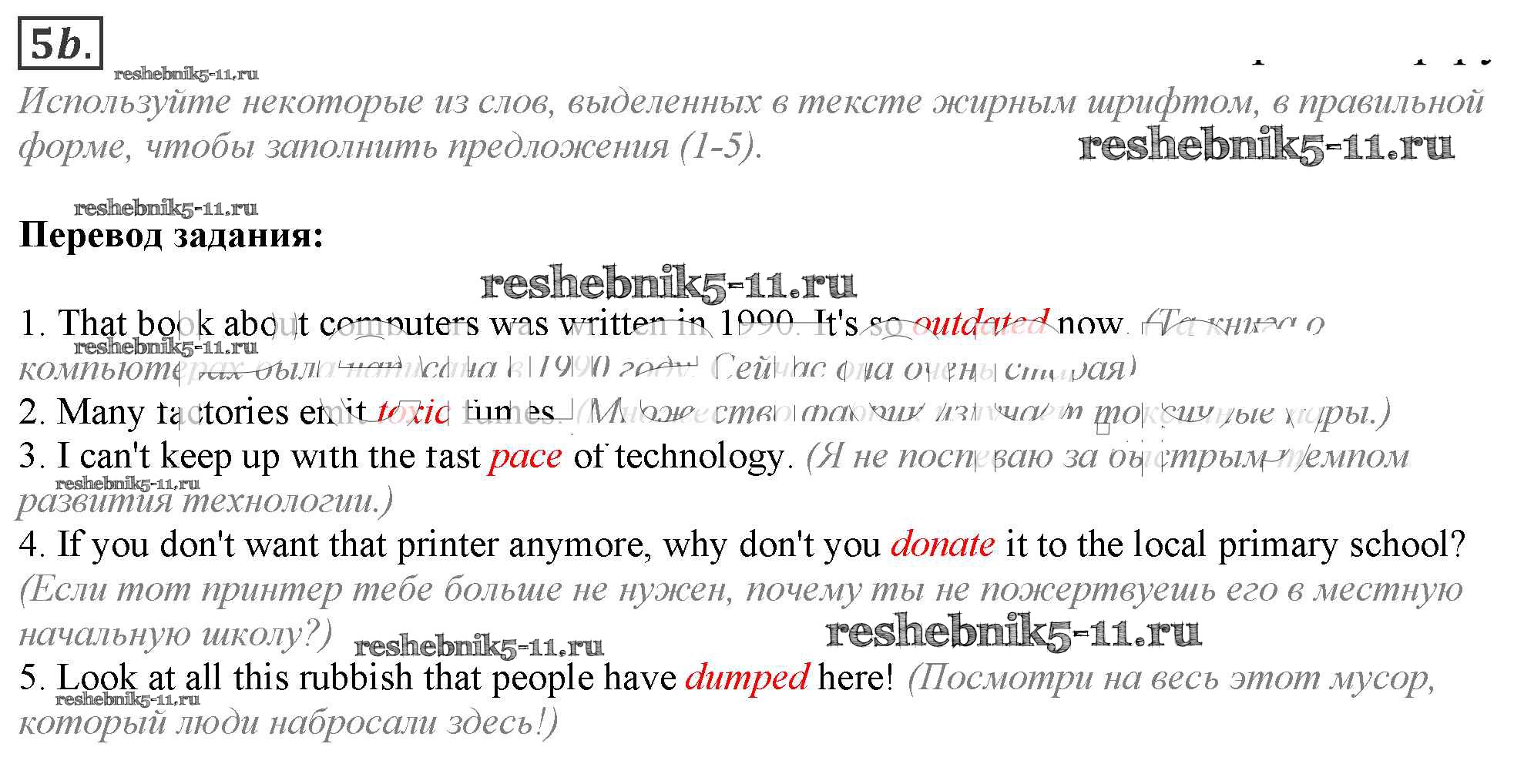 Готовая домашняя работа с ответами по Английскому языку за 9 класс Ваулина, Эванс, Дули, Подоляко Учебник Spotlight Просвещение 2010 ФГОС - Going Green 5b