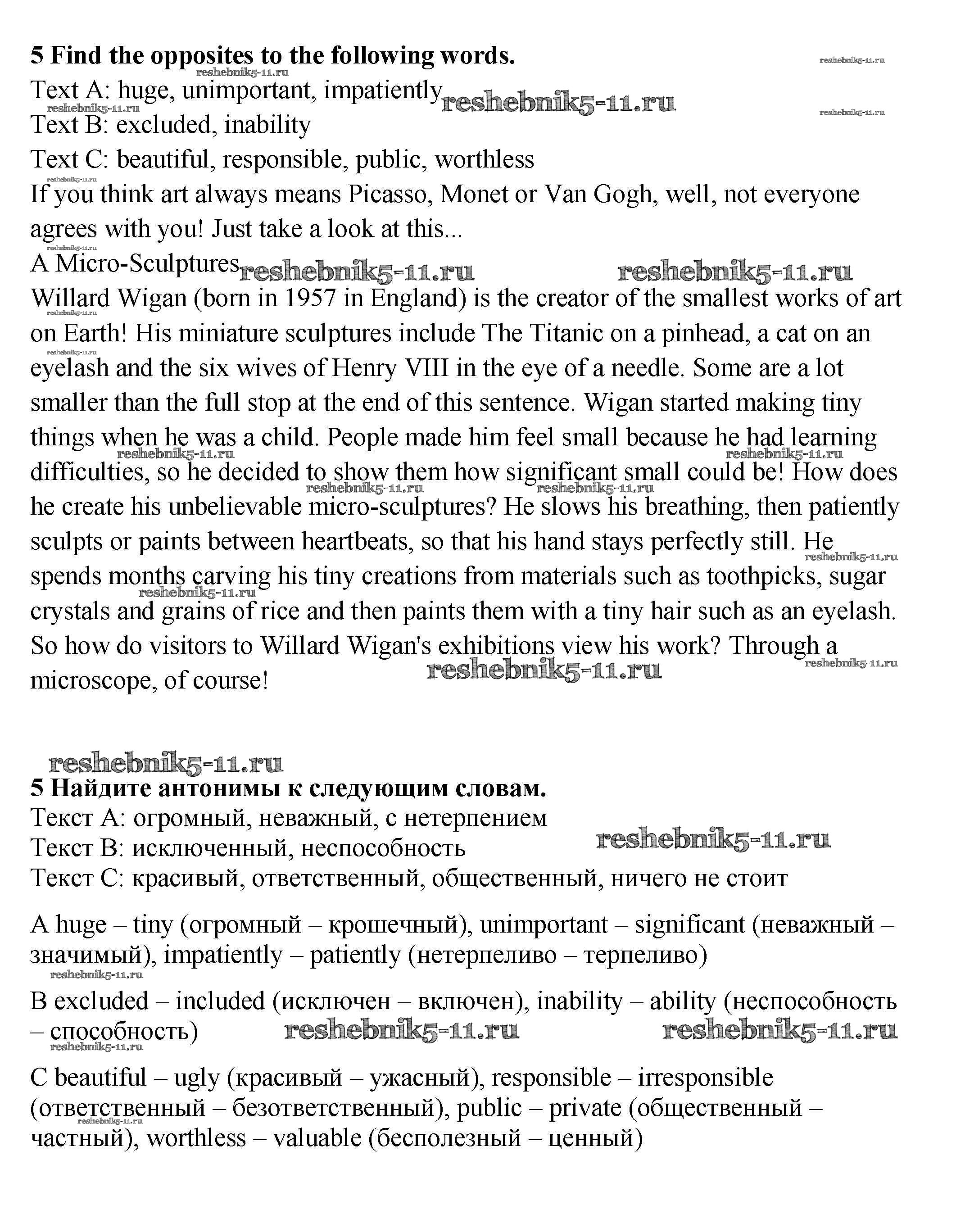 Готовая домашняя работа с ответами по Английскому языку за 9 класс Ваулина, Эванс, Дули, Подоляко Учебник Spotlight Просвещение 2010 ФГОС - Часть 5a 5