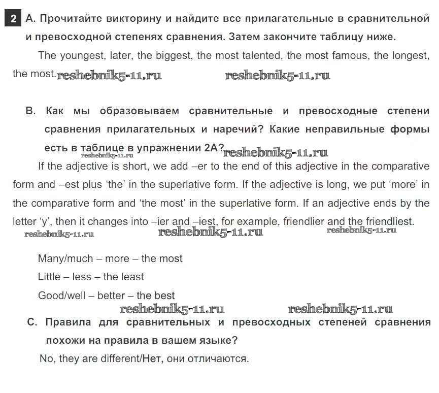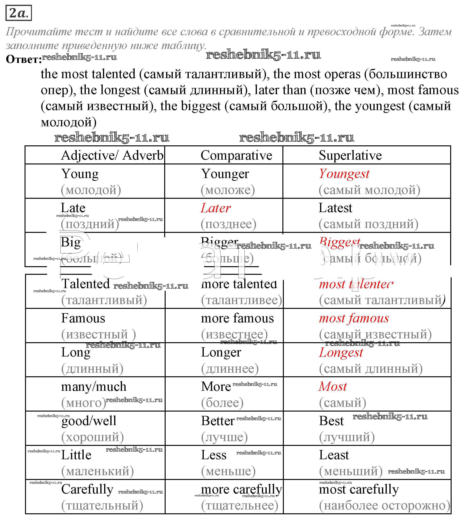 Готовая домашняя работа с ответами по Английскому языку за 9 класс Ваулина, Эванс, Дули, Подоляко Учебник Spotlight Просвещение 2010 ФГОС - Часть 5c 2a
